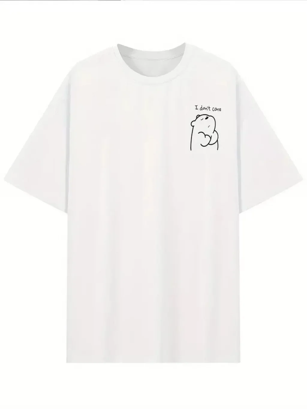 [Günlük T-Shirt] Hafif Kadın Günlük T-Shirt | Bol Kesim, Kısa Kollu, Yuvarlak Yaka, Eğlenceli Karikatür Ayı ve "Umrumda Değil" Baskı - Günlük Stil, İlkbahar/Yaz- Beyaz