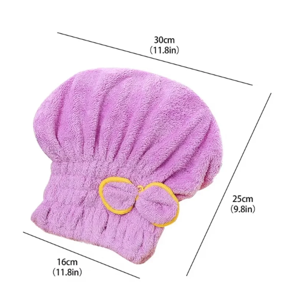 HAVLU SAÇ KURUTMA BONESİÜrün ÖzellikleriHavlu saç kurutma bonesi, saçları hızlı ve pratik bir şekilde kurutmak isteyenler için özel olarak tasarlanmıştır. Yüksek emiciliğe sahip mikrofiber havlu kumaşı sayesinde saçtaki fazla nemi kısa sürede emer, böylece saç kurutma süresini kısaltır. 30x25x16 cm ölçülerinde olan bone, esnek yapısıyla her baş ölçüsüne rahatlıkla uyum sağlar. Yumuşak dokusu sayesinde saçlara zarar vermez ve elektriklenmeyi önler. Duş sonrası kullanım için idealdir, ayrıca spor salonu, plaj veya seyahatlerde de kolaylıkla kullanılabilir. Üzerindeki şık fiyonk detayı estetik bir görünüm kazandırır. Hızlı kuruyan yapısı sayesinde hijyenik ve uzun ömürlü bir kullanım sunar.Paket İçeriği1 adet havlu saç kurutma bonesi