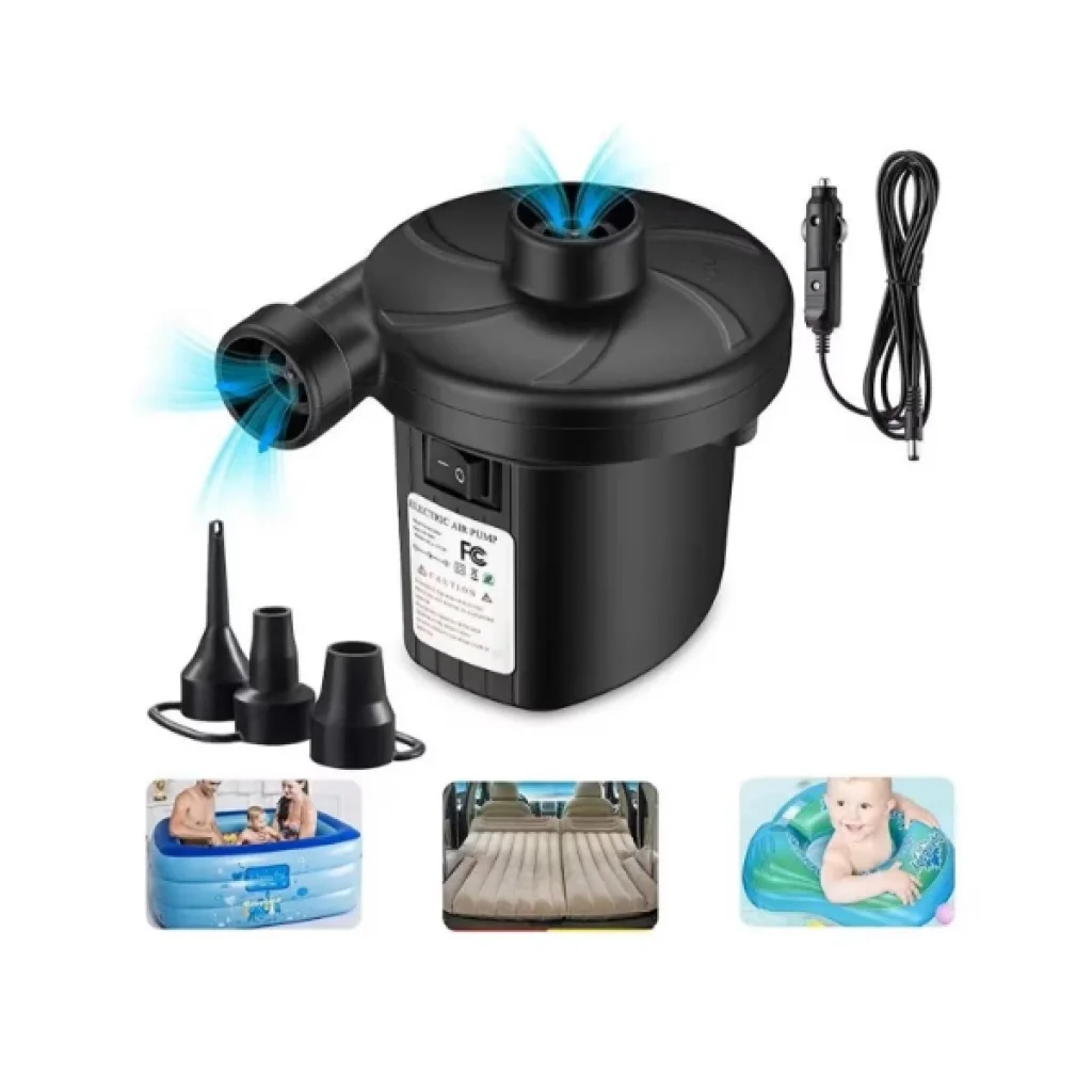 İKİ YÖNLÜ ELEKTRİKLİ HAVA POMPASIÜrün Özellikleriİki Yönlü Elektrikli Hava Pompası, hem şişirme (inflate) hem de hava boşaltma (deflate) işlevi görür. Yüksek hacimli şişme ürünler için uygundur; özellikle şişme yatak, bot, yüzme havuzu, kamp minderi ve su oyuncakları gibi ürünlerde kullanılır. Ürün, farklı ağız çaplarına sahip ürünlere uygun 3 adet değiştirilebilir uç aparatı içerir. Elektrik ile çalışır ve 220V adaptör veya 12V araç çakmak girişi ile uyumludur. Pratik ve hızlı kullanım sağlar, hem evde hem de kamp gibi dış mekan kullanımlarında idealdir. Kompakt yapısı sayesinde kolayca taşınabilir. Bu pompa, hem kampçılar hem de ev kullanıcıları için zamandan tasarruf sağlayan kullanışlı bir yardımcı üründür.Paket İçeriği1 Adet İki Yönlü Elektrikli Hava Pompası