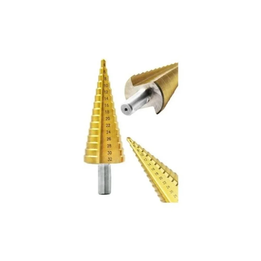KADEMELİ MATKAP UCU SAC DELME PANÇ SETİÜrün Özellikleri3 Parça Yüksek Hız Çeliğinden mamul kademeli matkap uç seti.Çift yiv sistemi ile çatlamadan kesim.Küçük Delgi : 4, 6, 8, 10, 12 mmOrta Delgi : 4, 6, 8, 10, 12, 14, 16, 18, 20 mmBüyük Delgi : 4, 6, 8, 10, 12, 14, 16, 18, 20, 22, 24, 26, 28, 30, 32 mmNormal HSS uçlara oranla 6 kata oranla daha dayanıklı kalay kaplama.Paket İçeriği1 adet kademeli matkap ucu sac delme panç seti
