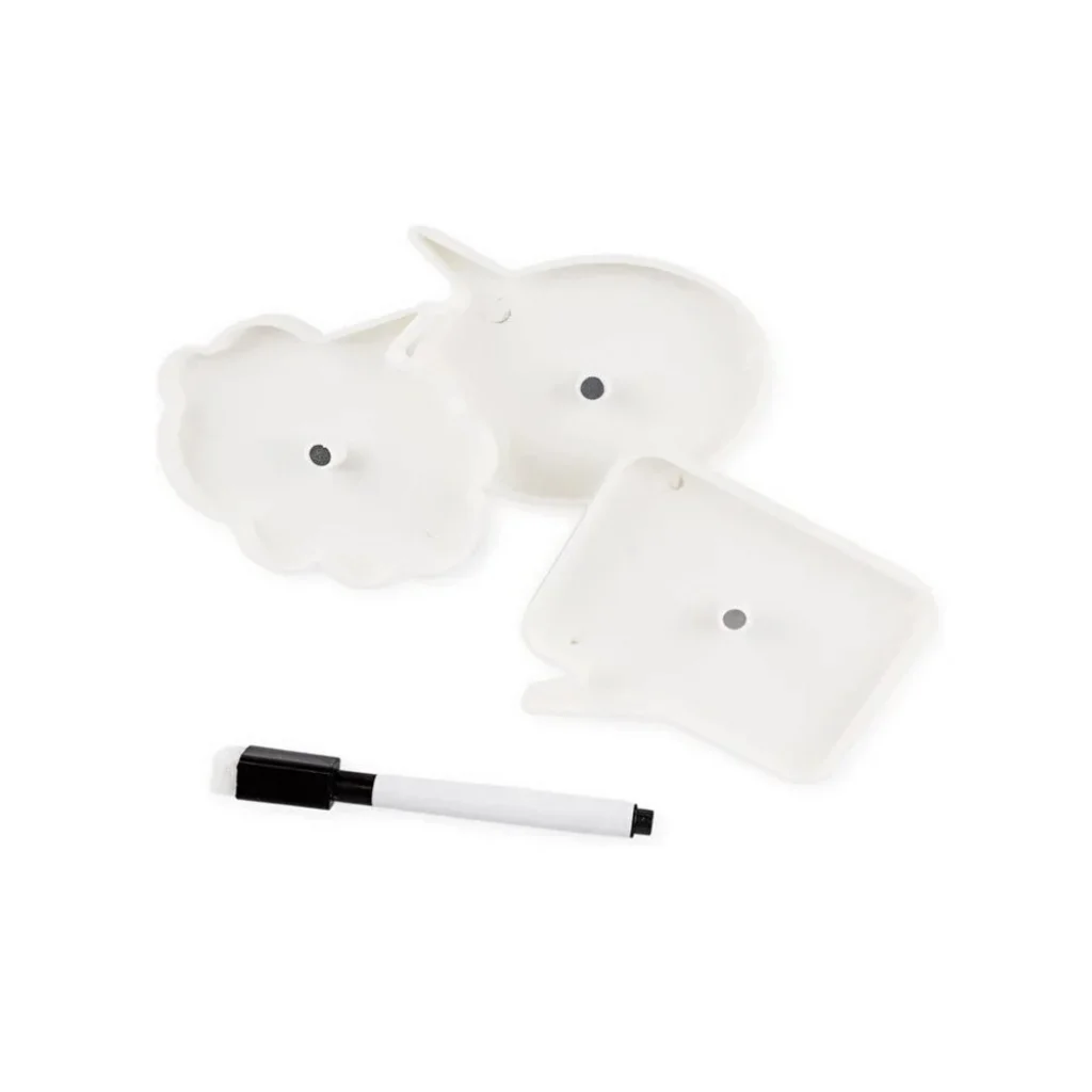 KALEMLİ KONUŞMA BALONU TASARIMLI 3'LÜ MAGNET SETİ Ürün ÖzellikleriMutfakta not tutmayı hiç bu kadar eğlenceli görmediniz! Kalemli Konuşma Balonu Tasarımlı Magnet Seti, hem işlevsel hem de dekoratif yapısıyla buzdolabınızın en dikkat çeken parçası olacak. Yüksek kaliteli plastik malzemeden üretilen bu set, içerisinde 3 farklı formda konuşma balonu magneti barındırır. Ürünle birlikte gelen siyah özel kalemi sayesinde alışveriş listelerinizi, hatırlatmalarınızı veya sevdiklerinize bırakmak istediğiniz sevgi dolu notları bu balonların üzerine kolayca yazabilirsiniz. Güçlü magnet özelliği sayesinde buzdolabı, metal pano veya tüm metal yüzeylere sıkıca tutunur. Şık beyaz yüzeyi, notlarınızın net görünmesini sağlarken mutfağınıza modern ve dinamik bir hava katar. Yazıp silinebilir yapısı (uygun kalemlerle) sayesinde tekrar tekrar kullanabileceğiniz bu not magneti seti, ev içi iletişiminize neşe katacak.Ürün Teknik ÖzellikleriÖzellikAçıklamaBoyutlar9 cm x 7 cm x 1 cm (Her bir balon için)MalzemeYüksek Kaliteli Dayanıklı PlastikSet İçeriği3 Adet Farklı Formda Konuşma Balonu + 1 Adet Siyah KalemMontajGüçlü Arka Magnet (Mıknatıslı)Kullanım AlanıBuzdolabı, Metal Panolar, Ofis GereçleriFonksiyonNot Tutma, Hatırlatma, Dekoratif GörünümPaket İçeriği3 Adet Konuşma Balonu Tasarımlı Magnet 1 Adet Siyah Yazım Kalemi.