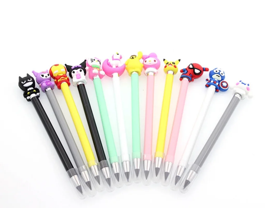 KARIŞIK KAHRAMAN FİGÜRLÜ KURŞUN KALEMÜrün ÖzellikleriKarışık kahraman figürlü kurşun kalem, sevimli ve renkli tasarımlarıyla hem çocuklar hem de koleksiyon severler için eğlenceli bir yazı deneyimi sunar. Üst kısmında yer alan farklı kahraman figürleri ile dikkat çeken bu kalemler, yumuşak uçlu yapısı sayesinde rahat yazım imkânı sağlar. Renkli gövde tasarımı ile defterlerinize neşe katar. Hafif ve ergonomik yapısı ile uzun süreli kullanımlarda bile konfor sağlar. Okul, ofis veya hediye amaçlı kullanım için uygundur. Model seçeneği yoktur, görseldeki modellerden karışık gönderilir.Paket İçeriği1 adet karışık kahraman figürlü kurşun kalem