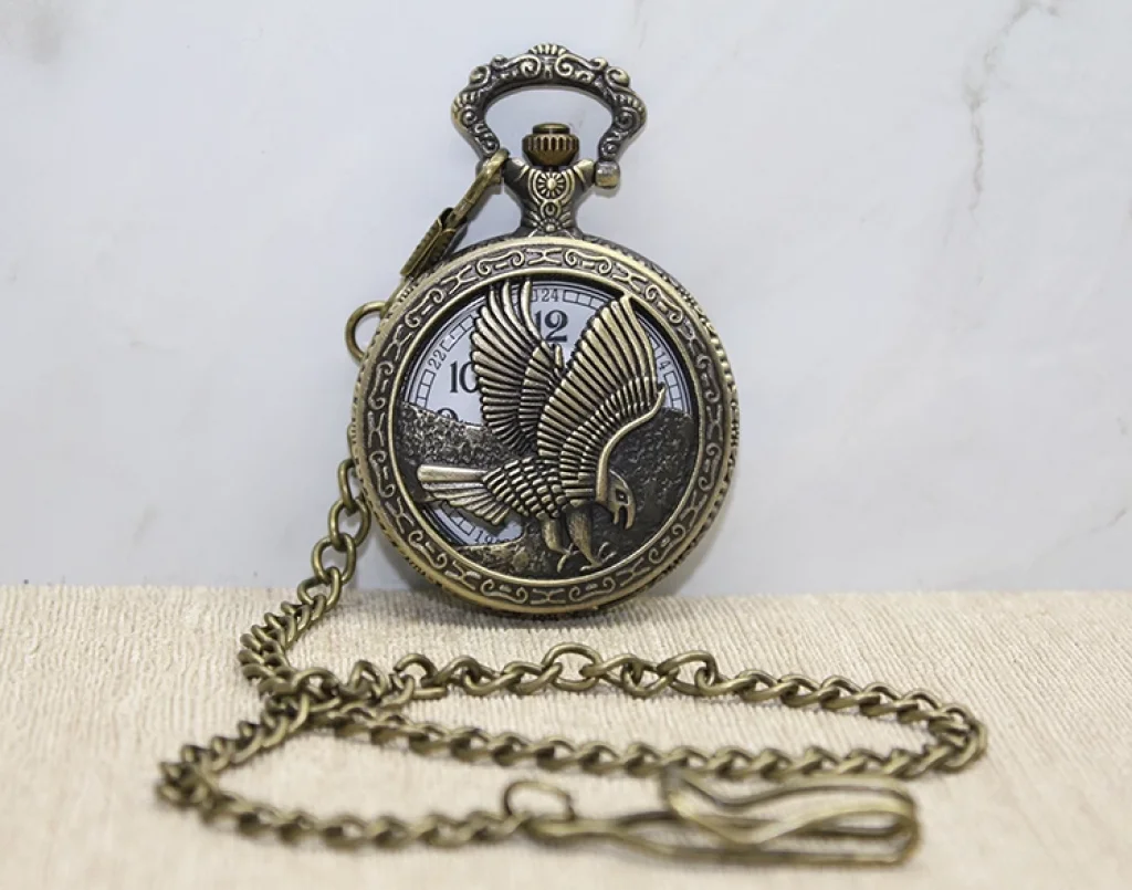KARTAL TASARIMLI KÖSTEKLİ SAATÜrün ÖzellikleriKartal tasarımlı köstekli saat, güçlü ve özgürlük sembolü olan kartal figürüyle nostaljik bir şıklık sunar. Bronz kaplama metal gövdesi, detaylı kabartma işlemeli kapağı ve klasik zincirli tasarımıyla dikkat çeker. Açılır kapak tasarımı sayesinde kadran kolayca görülebilir ve kullanılabilir. Hem günlük kullanım hem de koleksiyonluk bir parça olarak tercih edilebilecek bu saat, klasik aksesuar severler için ideal bir seçenektir.Paket İçeriği1 Adet Kartal Tasarımlı Köstekli Saat