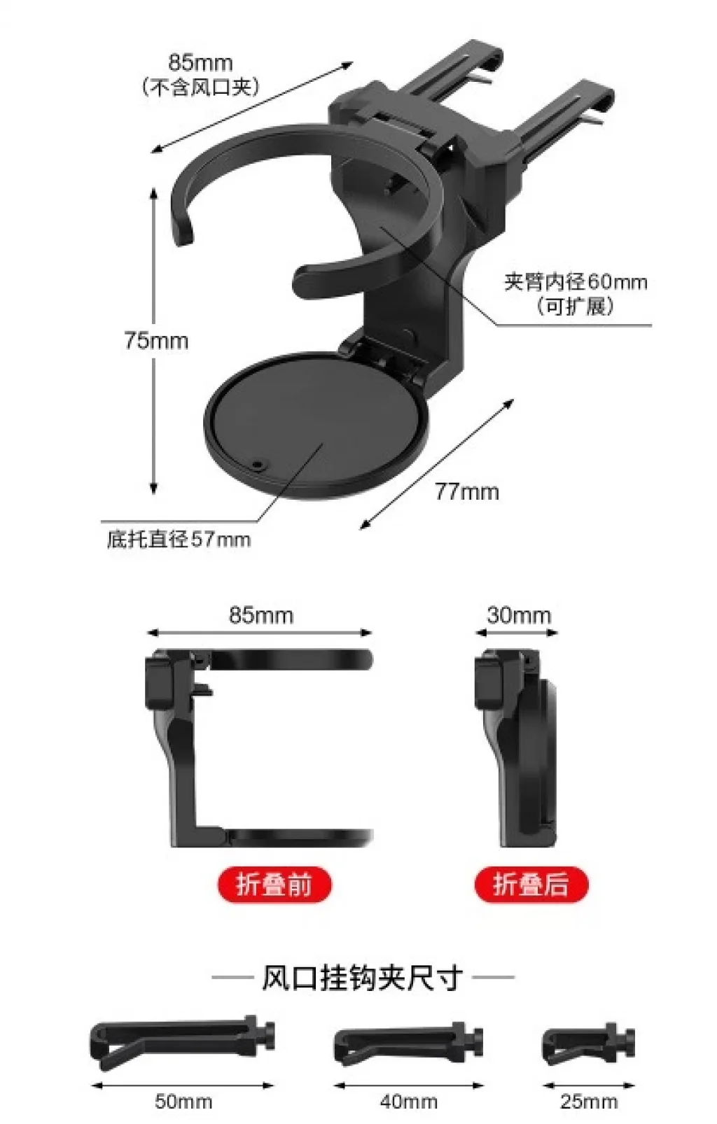 KATLANABİLİR ARABA BARDAK ŞİŞE TUTUCUÜrün ÖzellikleriKatlanabilir araba bardak şişe tutucu, sürüş esnasında içeceklerinizi güvenli bir şekilde sabit tutarak konfor sağlar. 7.5 x 7.7 x 8.5 cm boyutundaki kompakt yapısı sayesinde araç içinde fazla yer kaplamaz. Kullanılmadığında katlanabilir özelliğiyle pratik şekilde saklanabilir, gerektiğinde kolayca açılarak kullanıma hazır hale gelir. Su şişesi, kutu içecek, kahve bardağı ve termoslarla uyumlu olarak tasarlanmıştır. Isıya ve darbelere dayanıklı kaliteli plastikten üretilmiştir. Araç içi klima ızgaralarına kolayca monte edilerek sürüş esnasında sabit durur ve içeceklerin dökülmesini önler. Araç içi düzen ve kullanım kolaylığı için ideal bir aksesuardır.Paket İçeriği1 Adet Katlanabilir Araba Bardak Şişe Tutucu
