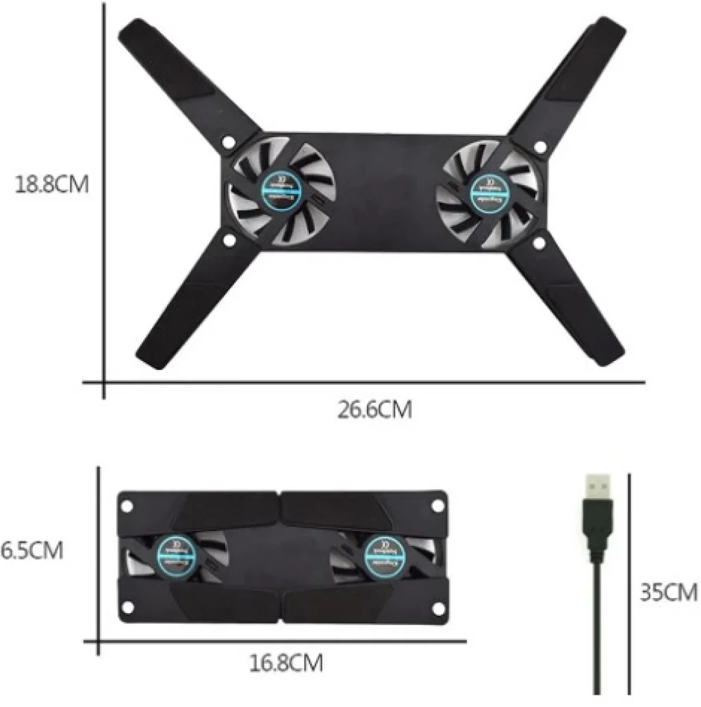 KATLANABİLİR LAPTOP SOĞUTUCUTaşınabilir tasarımı sayesinde herhangi bir yerde kullanım imkanı sunar, kullanıcı dostu bir deneyim sunar.Hızlı soğutma sağlayan iki adet 60mm fan, bilgisayarın performansını optimize eder ve aşırı ısınmayı önler.Katlanabilir tasarım, depolama ve taşıma sırasında yer tasarrufu sağlar, kullanıcılara kolaylık sağlar.USB bağlantısı sayesinde ek güç adaptörüne ihtiyaç duymadan kullanım imkanı sunar.Çeşitli ağırlıklara dayanabilen sağlam yapı, uzun ömürlü kullanım sağlar ve dizüstü bilgisayarın güvenliğini artırır.Her türlü dizüstü bilgisayarla uyumlu, geniş bir cihaz yelpazesi için ideal bir soğutucu çözüm sunar.Paket İçeriği1 adet katlanabilir laptop soğutucu