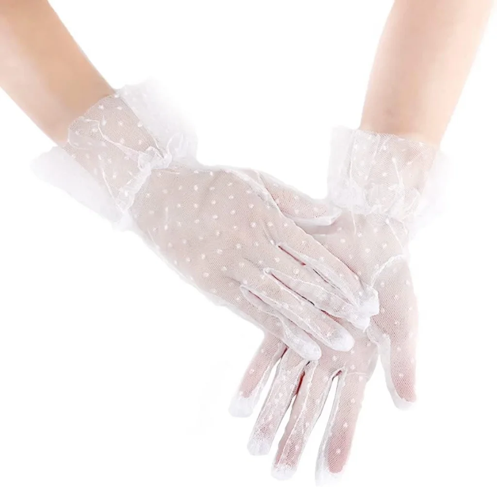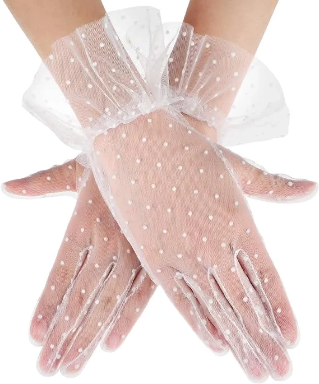 Kısa Boy Güpürlü Beyaz Puantiyeli Tül Eldiven
