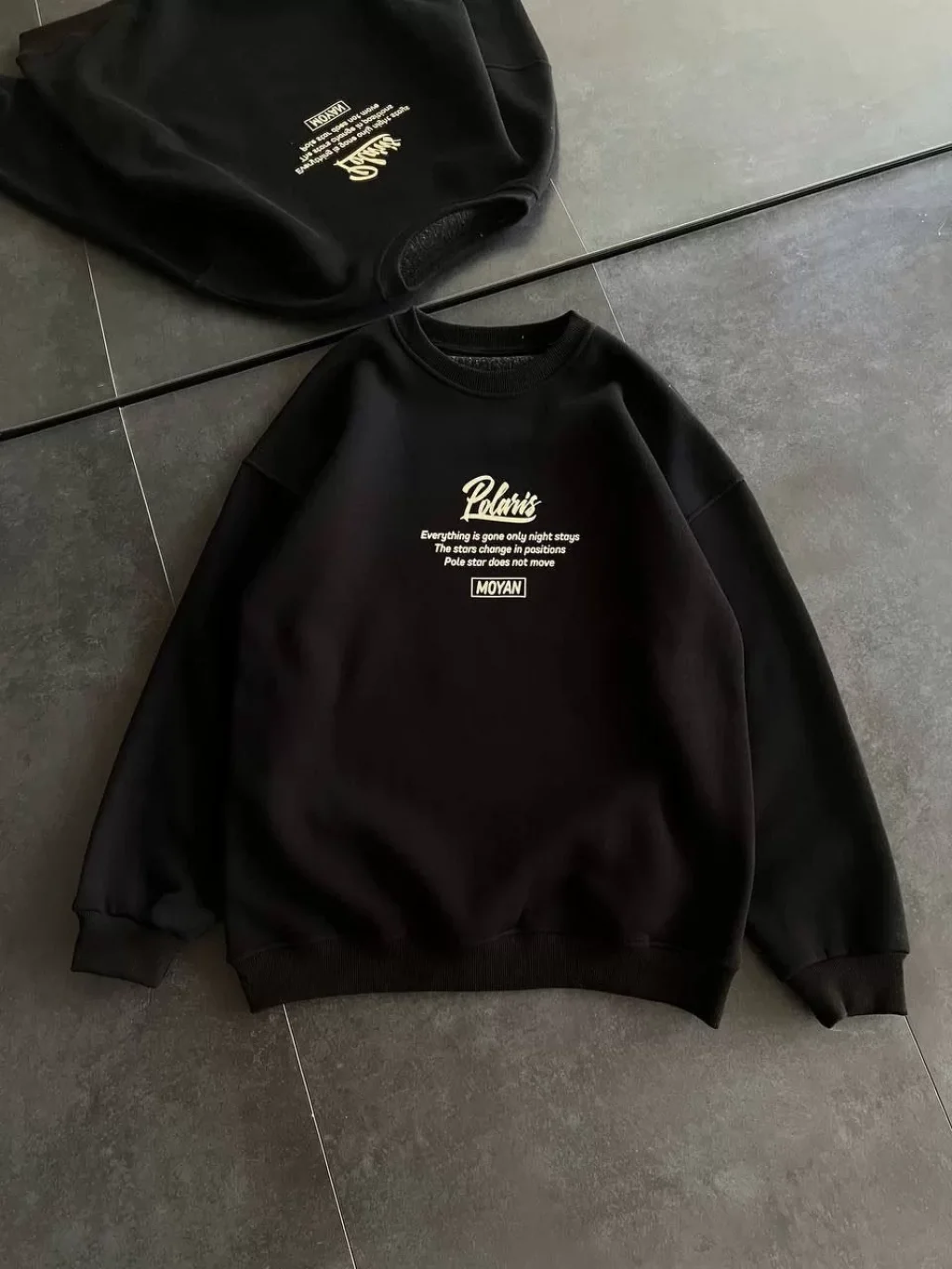 Kışlık Bisiklet Yaka Ön Ve Arka Baskılı SweatShirt - Siyah