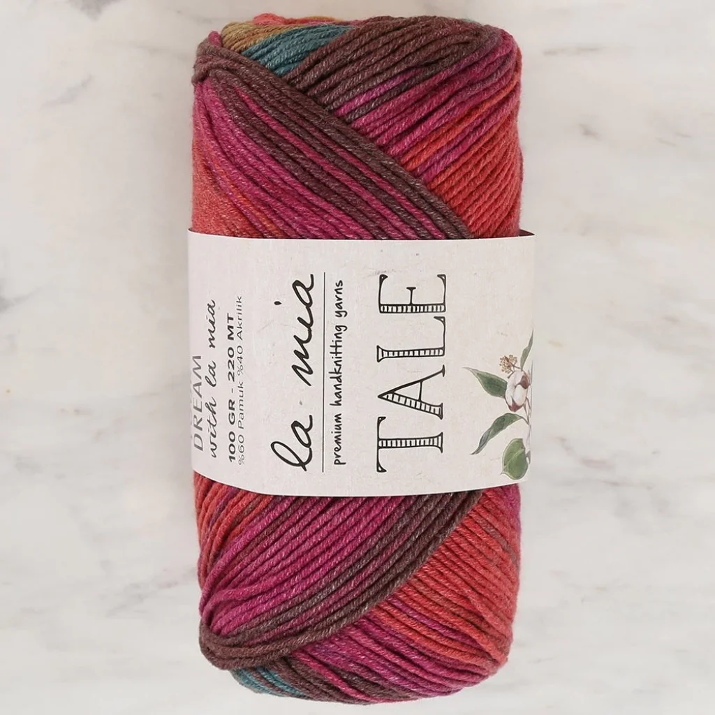 La Mia Markası'na ait yepyeni ürün TALE ile hayalini yarat.Geçişli renk tonlarının hakim olduğu bu seri ile havanız değişecek. Yumuşak ve kolay tüylenmeyen yapısı, güzel renk tonları ile örgüleriniz artık daha gösterişli. Tüm örgü modellerinizde güvenle tercih edebilirsiniz.