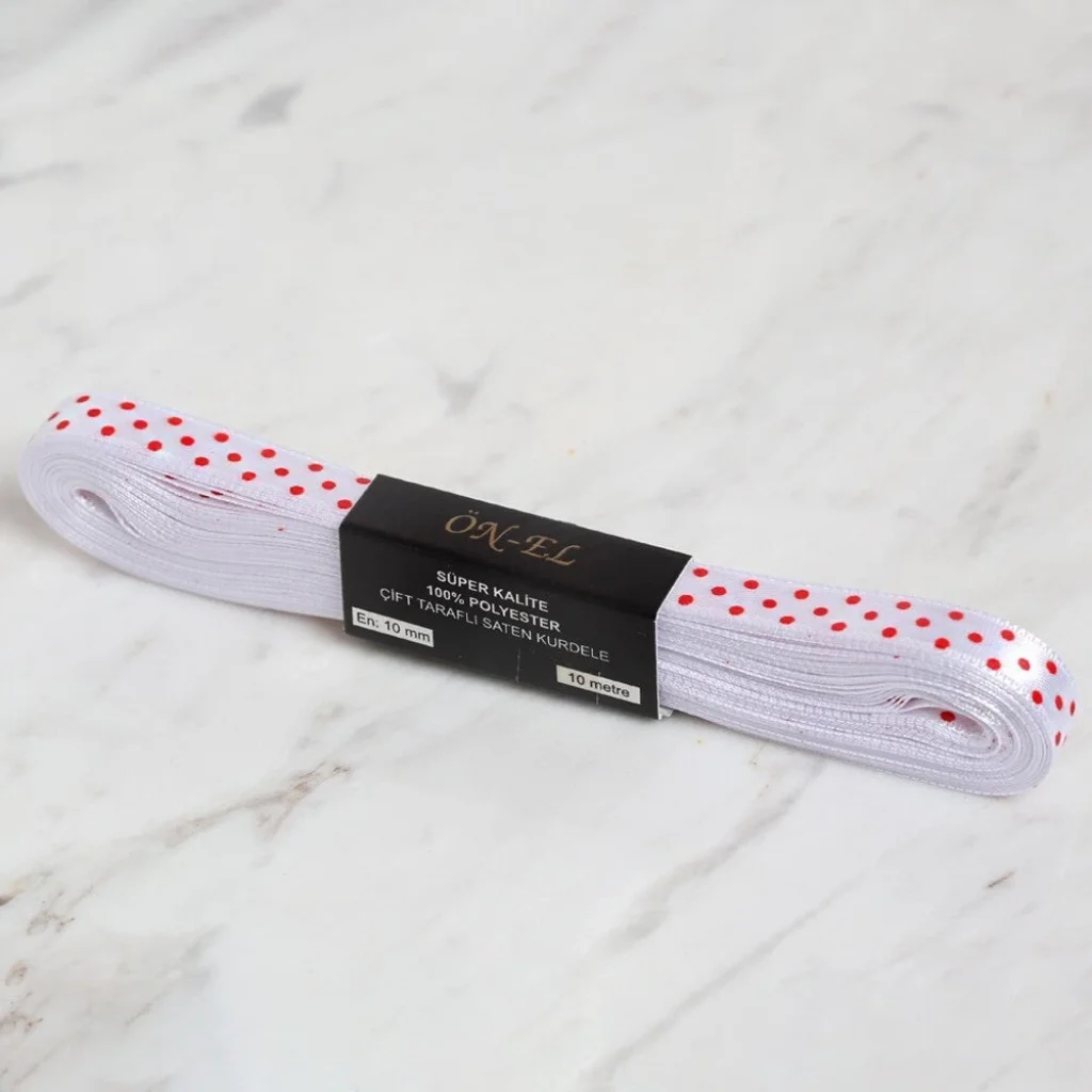 Loren Crafts 1cm 10 mt Beyaz Saten Puantiyeli Kurd