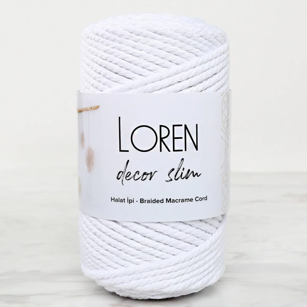 Makrome tığ veya şiş kullanmadan elle birbiri arasından geçirilen ipliklerden oluşan bir sanattır. Loren Decor Slim halat ipliği 2 mm kalınlığındadır. Yumuşak aynı zamanda da dayanıklıdır.