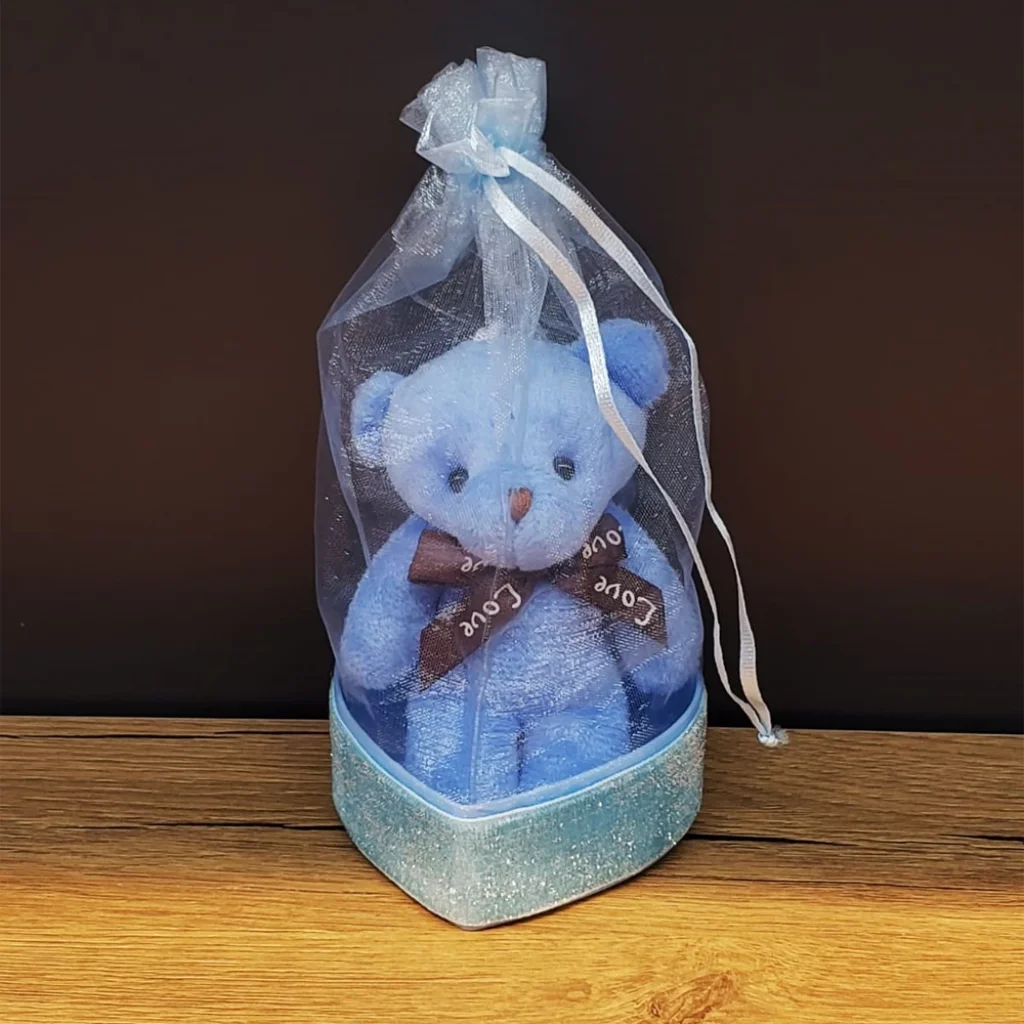 MAVİ HEDİYELİK KESE İÇİNDE AYICIKÜrün ÖzellikleriMavi hediyelik kese içinde ayıcık, zarif tasarımı ve sevimli görünümüyle özel günlerde hediye olarak tercih edilebilecek şık bir üründür. Kaliteli tül malzemeden üretilen kesesi, alt kısmında yer alan kalp şeklindeki plastik taban ile estetik bir duruş sergiler. İçindeki mini peluş ayıcık, yumuşak dokusu ve hoş mavi rengi ile dikkat çeker. Kına, nişan, düğün, bebek doğum günü veya özel kutlamalar için ideal bir hediye seçeneğidir. Hafif ve taşıması kolay yapısıyla hem görsel hem de duygusal değer taşır.Paket İçeriği1 Adet Mavi Hediyelik Kese İçinde Ayıcık