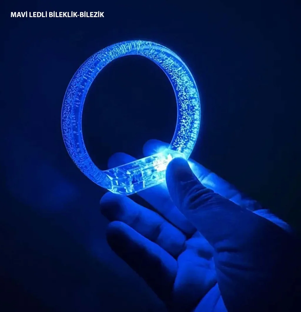 Mavi Led Işıklı Baskı Yapılabilen Pilli Bileklik Bilezik 1,5 cm Genişlik