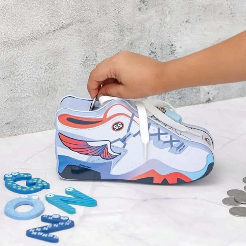METAL AYAKKABI KUMBARAŞıklığı ve Tasarrufu Bir Araya Getirin!Metal Ayakkabı Kumbara, eşsiz spor ayakkabı tasarımı ile hem şık bir dekoratif parça hem de pratik bir tasarruf aracıdır. Bu kilitli kumbara, biriktirdiğiniz paraların güvenliğini sağlarken, hem çocuklar hem de yetişkinler için mükemmel bir hediye seçeneği sunar. Yüksek kaliteli metalden üretilmiş olup, dayanıklılığı ve zarif görünümü ile öne çıkar. Kumbara, kilit ve anahtar özelliği ile ekstra güvenlik sağlar, böylece biriktirilen paraların harcanması önlenir.Bu kumbara sadece bir para kutusu olarak değil, aynı zamanda ev dekoru ve zaman okuyucu olarak da kullanılabilir. Parayı kutunun üzerindeki delikten kolayca yerleştirin ve endişelenmeyin! Kilit ve anahtar ile birlikte gelen bu metal kumbara, çocuklara tasarrufun önemini öğretmek için mükemmeldir.Paket İçeriği1 adet metal ayakkabı kumbara