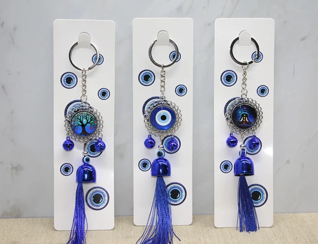 METAL NAZAR BONCUĞU ANAHTARLIKÜrün ÖzellikleriŞık ve dayanıklı metal nazar boncuğu anahtarlık, estetik tasarımı ve püsküllü detayıyla dikkat çeker. Metal gövdesi sayesinde uzun ömürlü olup, nazar boncuğu figürüyle geleneksel ve modern tarzı bir araya getirir. Çantanızda, arabanızda veya anahtarlarınızda zarif bir aksesuar olarak kullanılabilir. Hem kişisel kullanım hem de hediye seçeneği olarak idealdir.Paket İçeriği1 Adet Metal Nazar Boncuğu Anahtarlık
