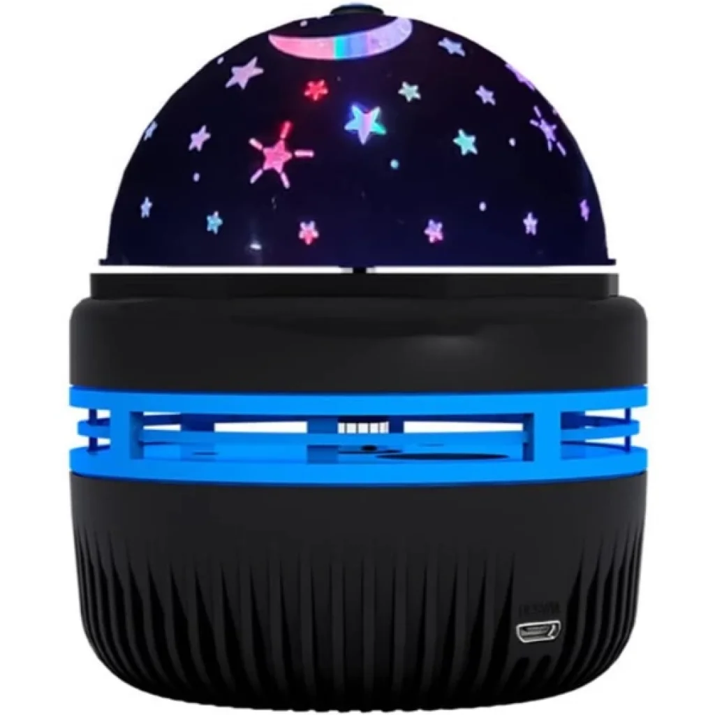 MİNİ YILDIZLI PROJEKTÖR GECE LAMBASIÜrün ÖzellikleriMini yıldızlı projektör gece lambası, loş ve rahatlatıcı ışık atmosferi ile özellikle çocuk odalarında huzurlu bir uyku ortamı sağlar. Kompakt tasarımı sayesinde taşınabilir olup 7.9 cm çapında ve 9.6 cm yüksekliğindedir. Yıldız ve gezegen desenlerini renkli ışık efektleriyle tavan ve duvarlara yansıtarak görsel bir şölen sunar. USB kablosu ile kolayca şarj edilebilir ve kablosuz kullanım imkânı sunar. Gece lambası fonksiyonunun yanı sıra, projektör özelliği sayesinde eğlenceli bir ambiyans yaratır. Ev, çocuk odası, uyku zamanı, parti ya da rahatlatıcı bir atmosfer oluşturmak istediğiniz her ortamda kullanılabilir. Düşük enerji tüketimiyle uzun süreli kullanım sağlar ve sessiz çalışması sayesinde gece boyunca kesintisiz bir aydınlatma deneyimi sunar.Paket İçeriği1 Adet Mini Yıldızlı Projektör Gece Lambası