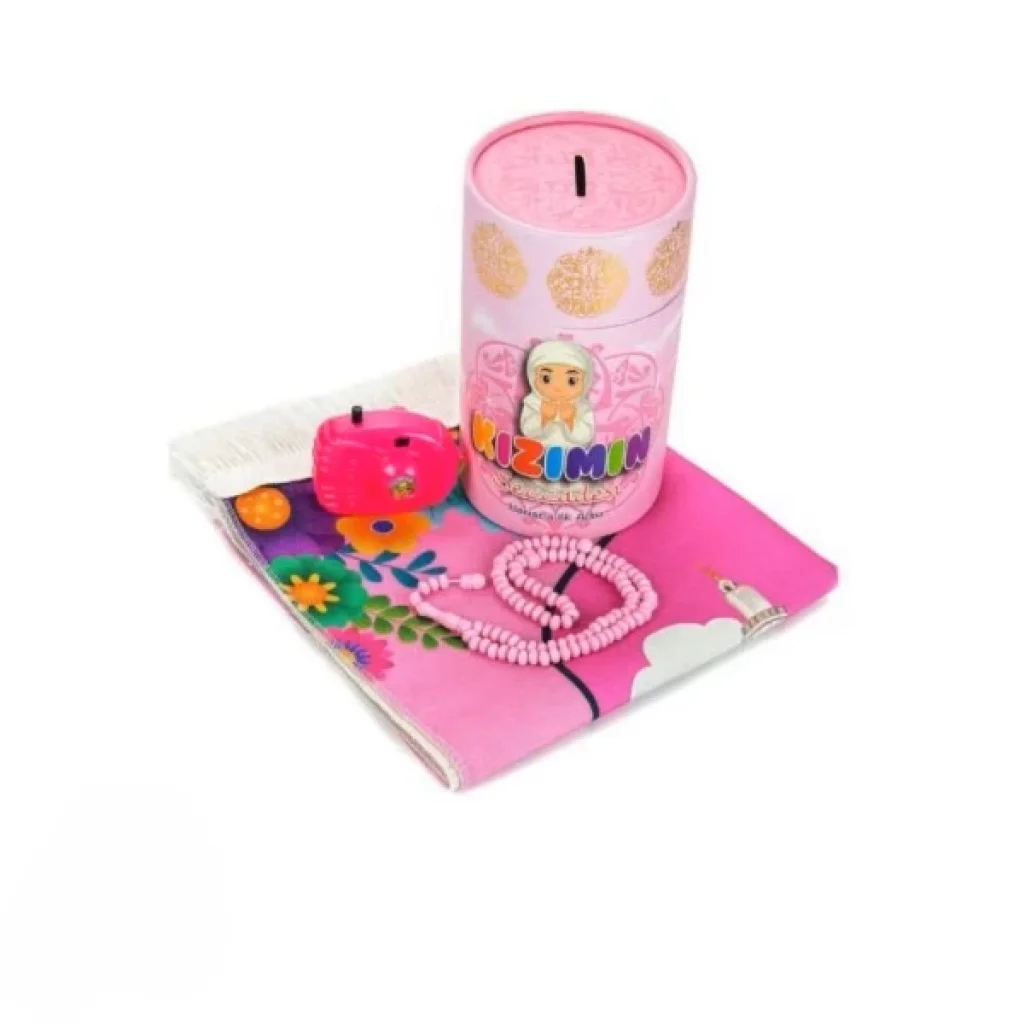 NAMAZA İLK ADIM KIZIMIN SECCADESİÜrün ÖzellikleriNamaza İlk Adım Kızımın Seccadesi, çocuklarınıza hediye olarak alabileceğiniz eğlenceli ve kullanışlı bir seccadedir. Yumuşak dokulu yüzeyi sayesinde rahat kullanım sunar. Üzerindeki ilgi çekici desenler çocuklarınızı ibadete alıştırırken eğlenceli bir deneyim sağlar. Ayrıca, seccade kutusu kumbara olarak kullanılabilir, böylece çocuklarınız hem ibadetlerini yerine getirirken hem de biriktirme alışkanlığı kazanabilirler. Çocuklar için namazı daha eğlenceli hale getiren bu seccade, onların ibadetle tanışmaları için mükemmel bir araçtır. Tesbih ve içinde Mekke - Medine görselleri olan oyuncak fotoğraf makinesi hediyesiyle birlikte, çocuklarınız için hem eğitici hem de eğlenceli bir hediye seçeneğidir. Paket İçeriği1 adet Namaza İlk Adım Kızımın Seccadesi1 adet Tesbih Hediyesi1 adet Mekke - Medine Görselleri olan Oyuncak Fotoğraf Makinesi