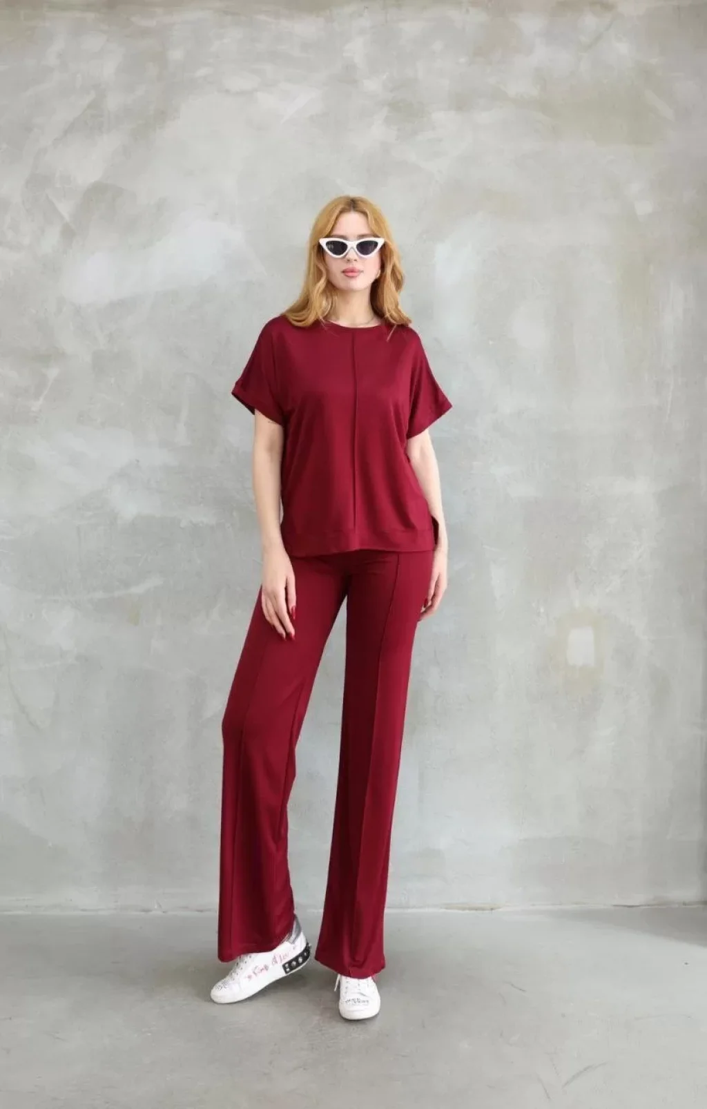 Osy Modal Yumuşak dokulu Kumaş Bisiklet Yaka Kısa Kollu Takım - Bordo