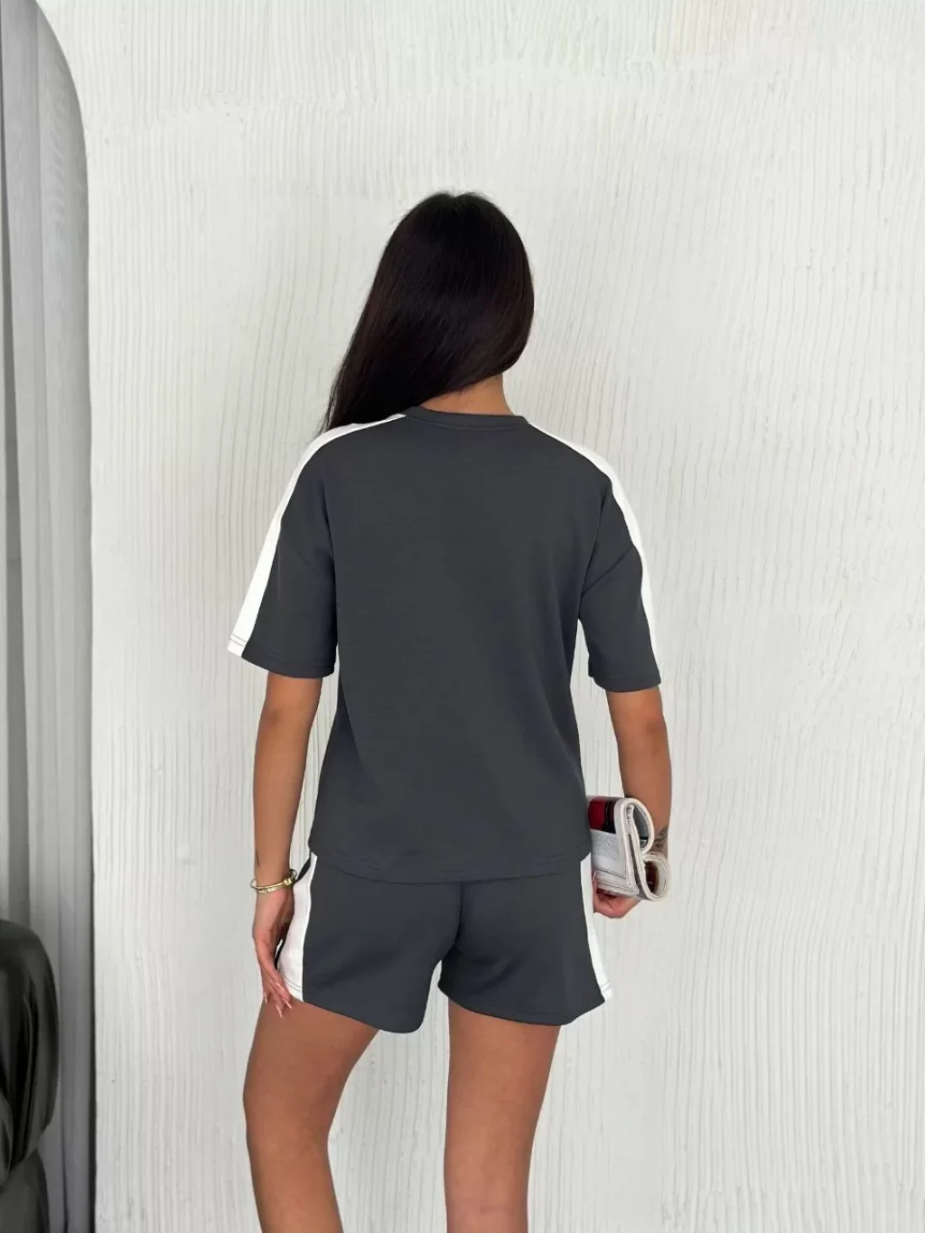 Osy Modal yumuşak dokulu Kumaş Kadın Parçalı Bisiklet Yaka T-shirt Kısa Şort İkili Takım - Antrasit
