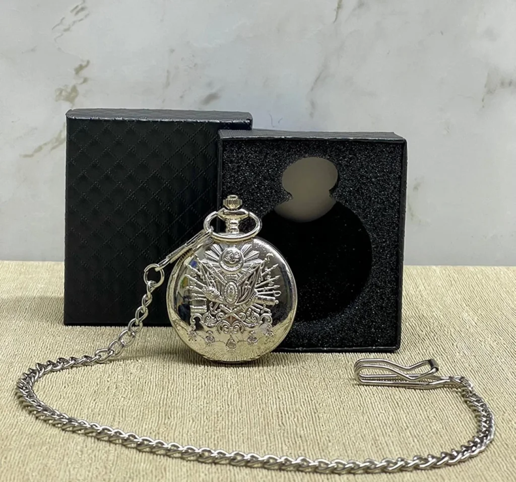 ÖZEL KUTULU OSMANLI DEVLET ARMASI GÜMÜŞ KÖSTEKLİ SAATÜrün ÖzellikleriÖzel kutulu Osmanlı Devlet Arması gümüş köstekli saat, zarif ve tarihi dokusuyla dikkat çeken şık bir koleksiyon parçasıdır. 4x5 cm boyutundaki kompakt yapısı sayesinde taşınabilir ve kolay kullanılabilir. Ön yüzeyinde Osmanlı Devleti’nin ihtişamını yansıtan arma detayı yer alırken, metalik gümüş rengi klasik bir görünüm sunar. Köstek zinciri ile tamamlanan bu saat, hem günlük kullanımda nostaljik bir aksesuar hem de özel günlerde anlamlı bir hediye olarak tercih edilebilir. Dayanıklı malzemesi uzun ömürlü kullanım sağlarken, özel kutusu şık bir sunum ve güvenli saklama imkanı verir.Paket İçeriği1 adet Özel Kutulu Osmanlı Devlet Arması Gümüş Köstekli Saat
