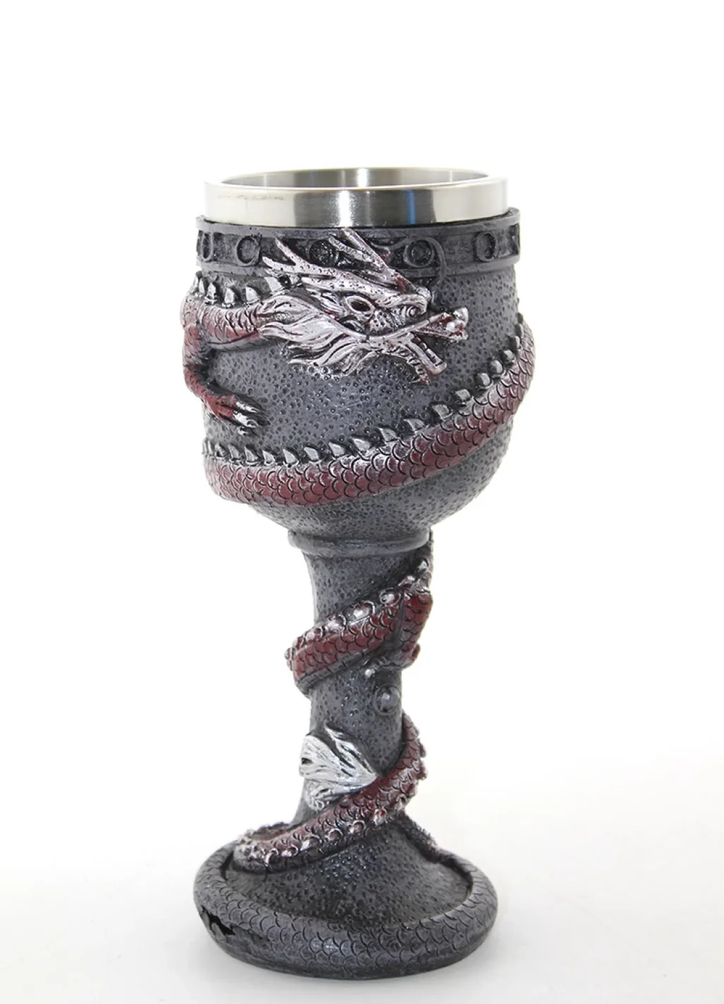 PASLANMAZ ÇELİK KADEH BARDAK MODEL 3Ürün ÖzellikleriPaslanmaz Çelik Kadeh Bardak Model 3, kadehi saran zarif ejderha işlemesiyle benzersiz bir içecek aksesuarıdır. Dayanıklı paslanmaz çelik yapısı, sıcak ve soğuk içeceklerinizi uzun süre muhafaza ederken, görkemli ejderha motifleri kupaya mistik ve estetik bir görünüm kazandırır. Dekoratif bir obje olarak masanızda yer alırken, aynı zamanda işlevsel bir içecek kabı olarak kullanılabilir. Koleksiyon severler ve fantastik temalara ilgi duyanlar için ideal bir seçenektir.Paket İçeriği1 adet Paslanmaz Çelik Kadeh Bardak Model 3