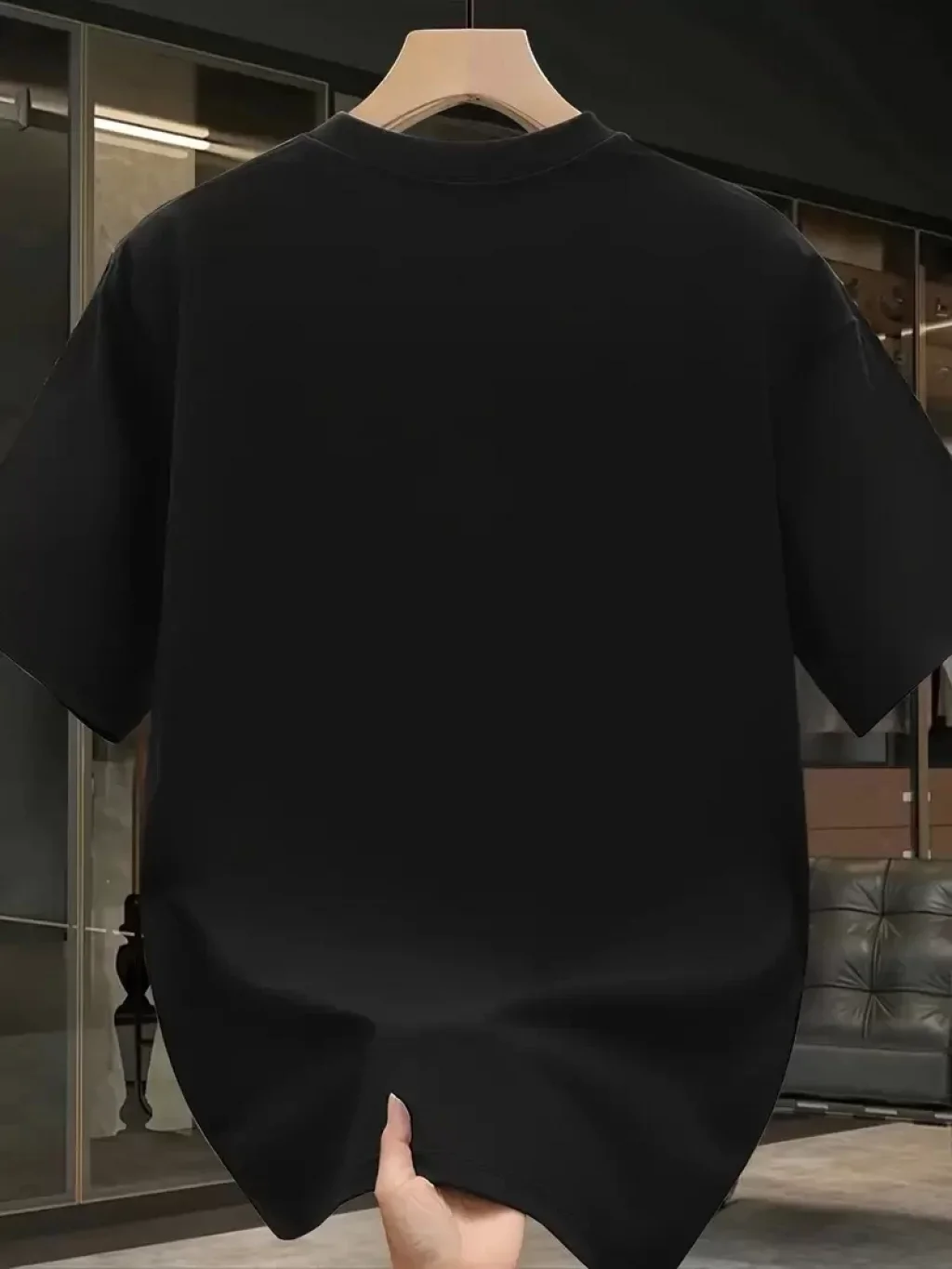 Pembe Panter Baskılı Erkek Oversize Günlük Kısa Kollu Tişört İlkbahar ve Yaz için Mükemmeldir - Siyah