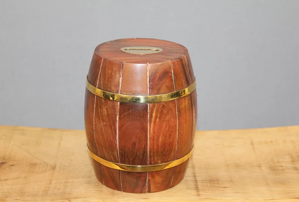 Pirinç Detaylı Fıçı Kumbara Model 2