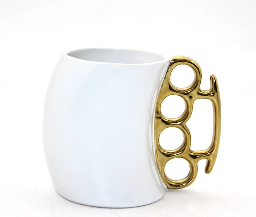 Porselen Muşta Tasarımlı Kupa Bardak Beyaz Renk