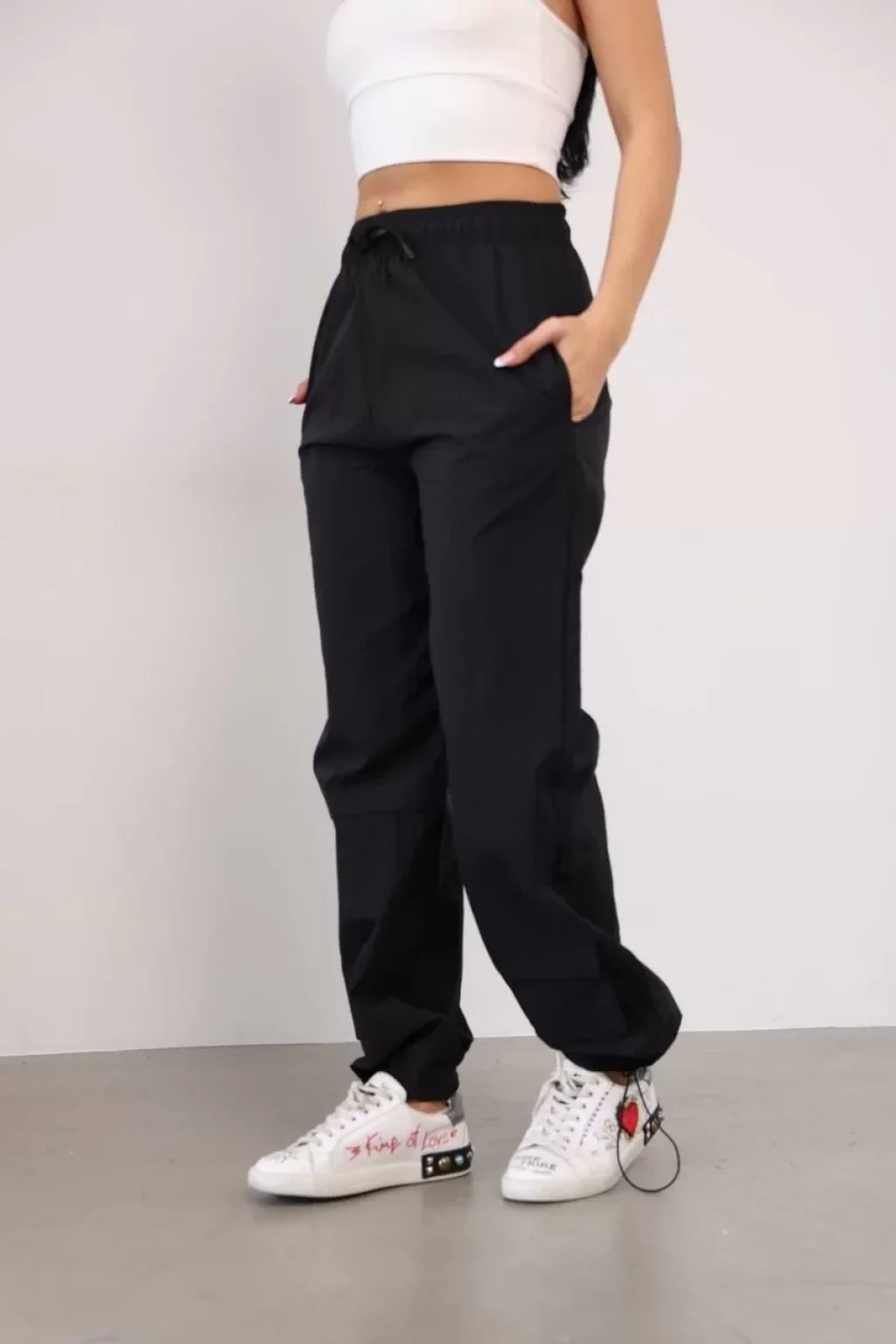 Praşut Kumaş Paça Cepli Baggy Eşofman - Siyah