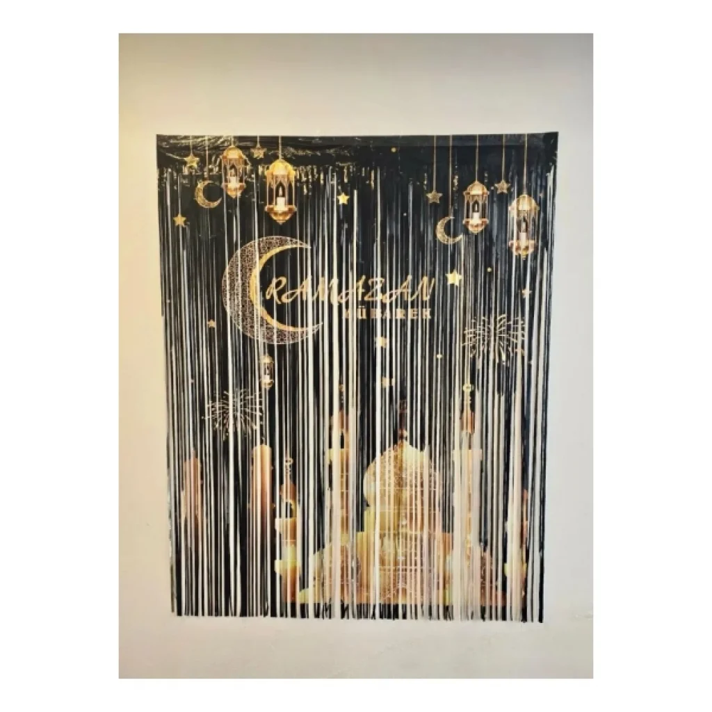 RAMAZAN METALİZE PERDE SÜSÜrün ÖzellikleriRamazan Metalize Perde Süs, Ramazan ayının atmosferini evinize taşıyan şık bir dekoratif üründür. Bu süs, metalize malzemeden üretilmiş olup, ışıltılı ve zarif bir görünüm sağlar. Perde süsü, özellikle Ramazan ayı süresince evlerde, ofislerde veya camilerde kullanılabilir. Çift taraflı bantı sayesinde kolayca kapı pervazlarına, duvarlara vb. yapıştırılabilir. Altın ve gümüş renk tonları ile Ramazan’ın manevi havasını yansıtan bu süs, perdeler, duvarlar veya diğer dekoratif alanlarda kullanılabilir. Kolayca asılabilir ve estetik bir atmosfer yaratır. Ramazan temalı etkinlikler için mükemmel bir süsleme ürünü olan bu perde süsü, evinizin her köşesine manevi bir dokunuş ekler.Paket İçeriği1 adet Ramazan Metalize Perde Süs