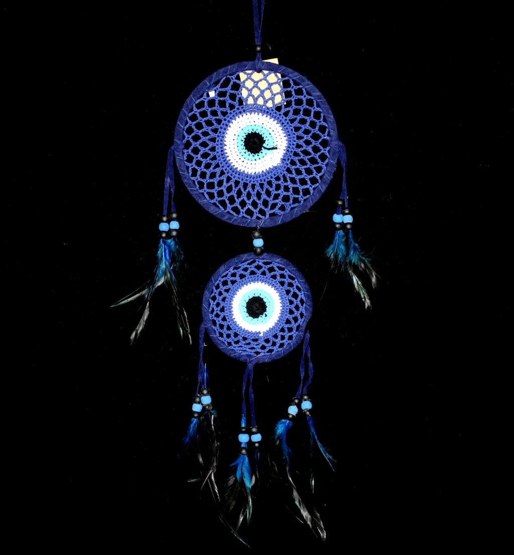 RÜYA KAPANI DREAMCATCHER MODEL 25Ürün ÖzellikleriEvinize mistik bir dokunuş katmak ve negatif enerjiyi uzaklaştırmak için özel olarak tasarlanmış bu rüya kapanı, dekoratif yapısıyla dikkat çeker. Nazar boncuğu detaylarıyla bezenmiş tasarımı, geleneksel ve modern unsurları bir araya getirerek şık bir görünüm sunar. El yapımı örgü detayları ve tüy süslemeleriyle tamamlanan bu ürün, yatak odanızda veya yaşam alanlarınızda huzurlu bir atmosfer yaratmanıza yardımcı olur.Paket İçeriği:1 adet Rüya Kapanı Dreamcatcher Model 25