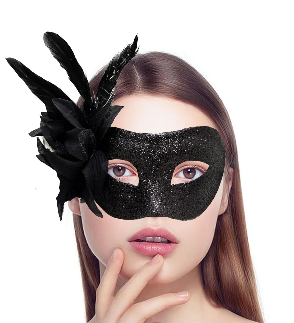 Siyah Metalize Tüylü Parti Maskesi