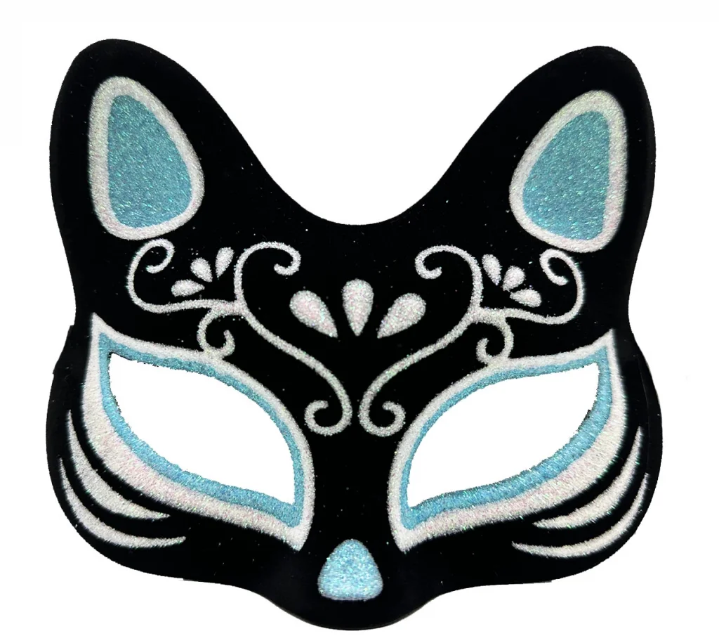 Siyah Süet Gümüş Mavi Simli Kedi Maskesi