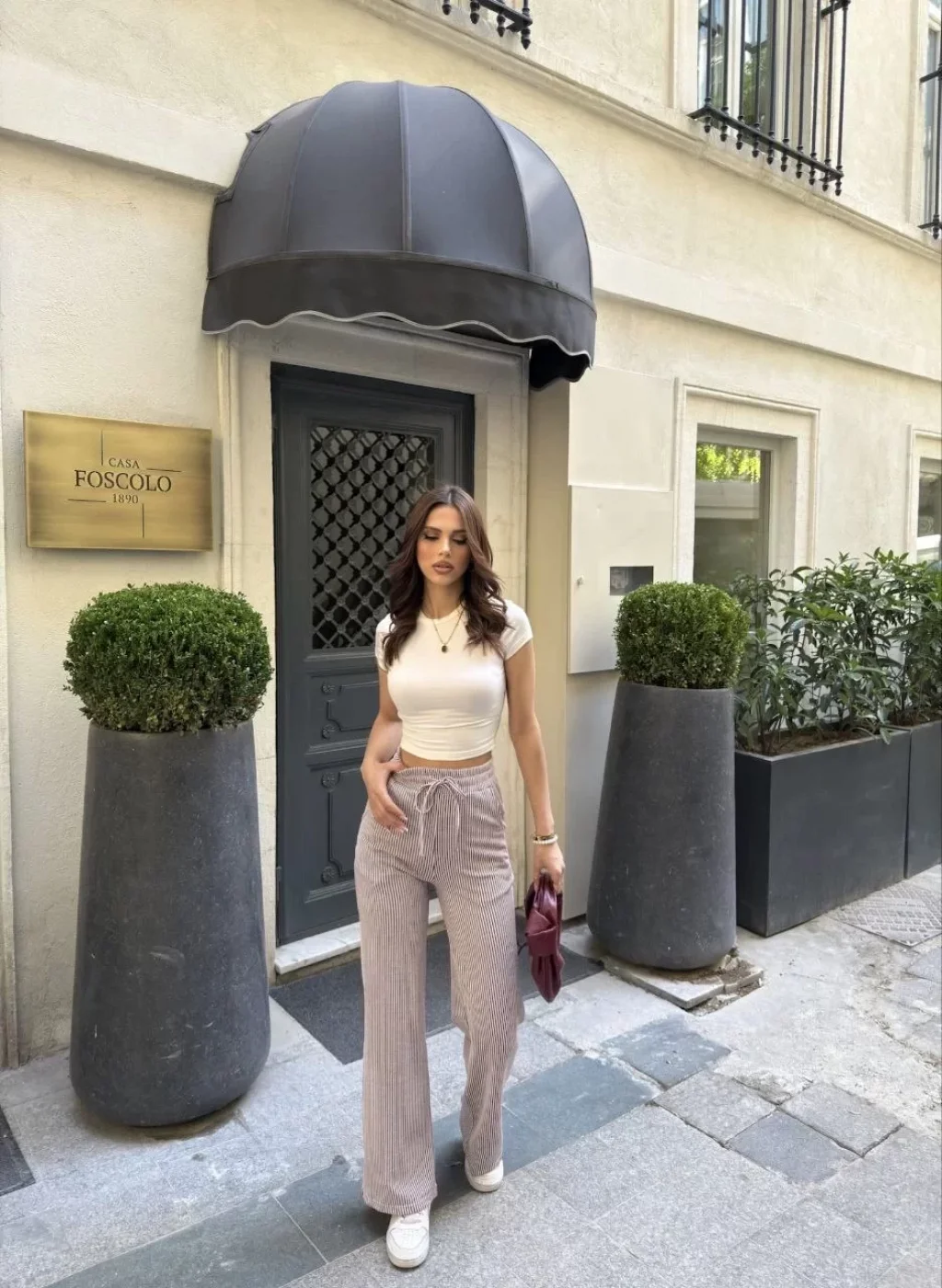 Su Yolu Çizgili kolay Kombinle Ne Bilir Cepli Pantolon - Bordo