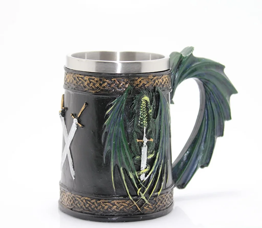 TASARIM KUPA BARDAK MODEL 2Ürün ÖzellikleriTasarım Kupa Bardak Model 2, ejderha temalı detayları ve gotik tasarımıyla dikkat çeken, hem koleksiyonluk hem de günlük kullanıma uygun bir bardaktır. Sap kısmı ejderha kanadı şeklinde tasarlanmış olup, dış yüzeyinde kılıç ve ejderha figürleri bulunmaktadır. Paslanmaz çelik iç haznesi sayesinde içeceklerin sıcaklığını uzun süre muhafaza eder ve kolay temizlenebilir. Estetik ve dayanıklı yapısıyla kahve, çay ve diğer içecekleriniz için ideal bir seçimdir.Paket İçeriği1 Adet Tasarım Kupa Bardak Model 2