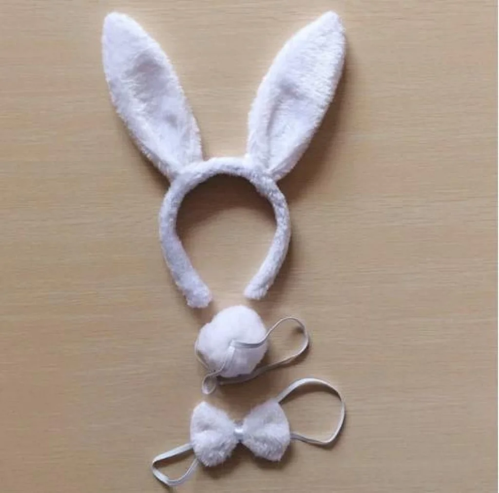 Tavşan Kostüm Seti Taç Papyon Kuyruk Beyaz Renk