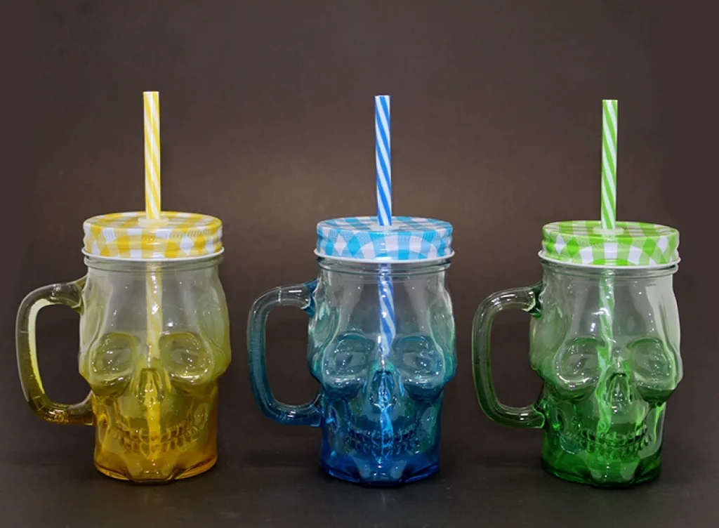 TEKLİ CAM KURUKAFA KUPA BARDAK PİPETLİÜrün ÖzellikleriŞık ve dikkat çekici tasarımıyla Kurukafa Kupa Bardak, özel günler, partiler ve günlük kullanımlar için ideal bir tercihtir. Cam malzemeden üretilmiş olup dayanıklı ve uzun ömürlüdür. Üzerinde vida kapak sistemi bulunmakta olup sızdırmaz yapıdadır. Pipeti ile birlikte gelen bu özel tasarım bardak, içeceklerinizi keyifle tüketmenizi sağlar. Renkli tasarımı ve modern görünümüyle sofralarınıza farklı bir hava katar.Paket İçeriği1 Adet Tekli Cam Kurukafa Kupa Bardak