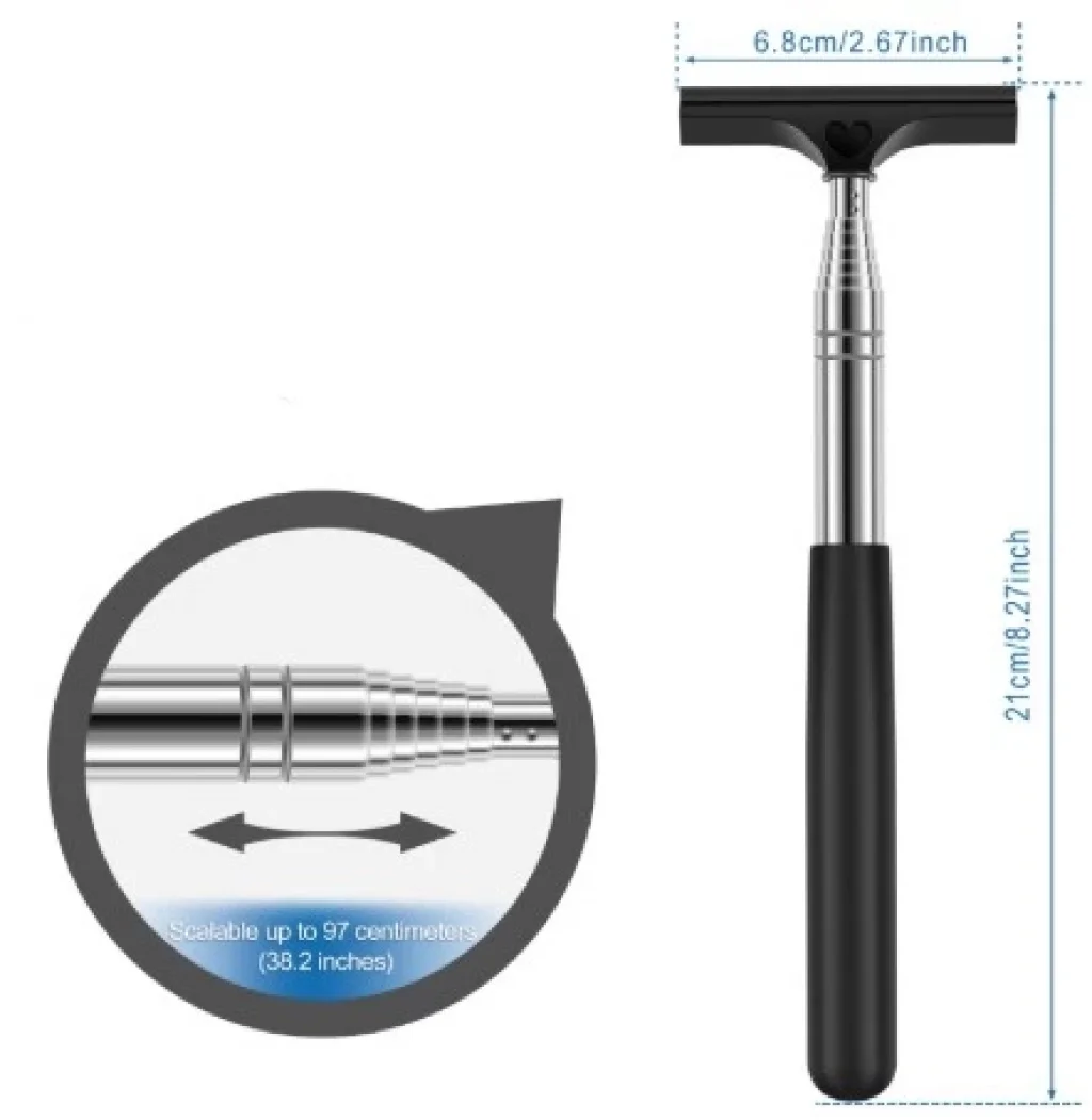 TELESKOPİK ARABA CAM AYNA SİLECEĞİÜrün ÖzellikleriTeleskopik araba cam ayna sileceği, sol ve sağ dikiz aynalarının yanı sıra ulaşılması zor cam köşelerinde etkili temizlik sağlar. 98 cm'ye kadar uzayabilen teleskopik yapısı sayesinde yüksek ve derin alanlara kolaylıkla erişim sunar. Yağ lekeleri, toz ve silecek altı kirlerini suyla fırçalayarak etkili şekilde temizler. Zorlu hava koşullarında bile camlarınızda net görüş sağlayarak güvenli sürüşe katkıda bulunur. Kompakt yapısı sayesinde küçüldükten sonra kolayca saklanabilir ve araç içinde yer kaplamaz. Pratik, dayanıklı ve fonksiyonel tasarımıyla araç temizliği için ideal bir üründür.Paket İçeriği1 Adet Teleskopik Araba Cam Ayna Sileceği