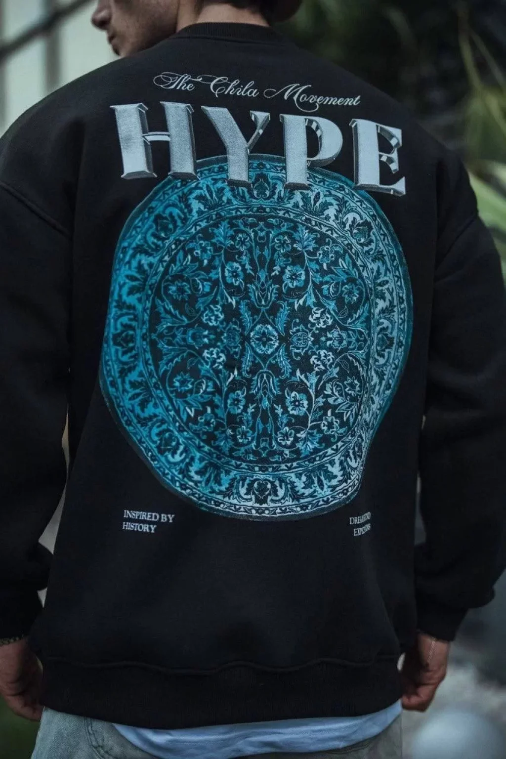 Üç İplik Bisiklet Yaka Baskılı SweatShirt - Siyah
