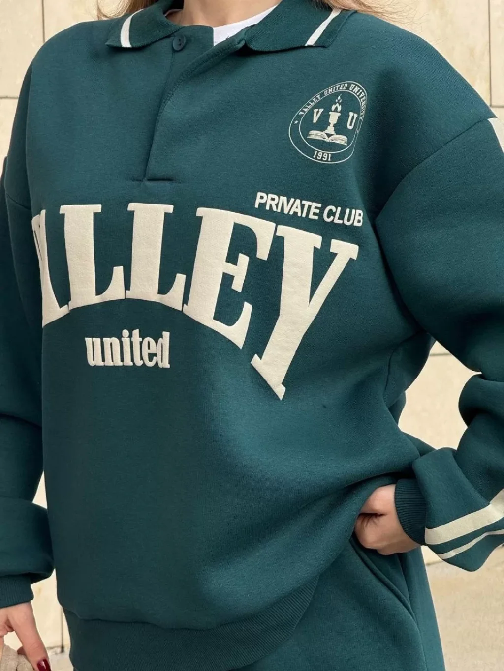 Üç İplik Yakalı Sweat Baggy Pantalonlu Takım - Yeşil