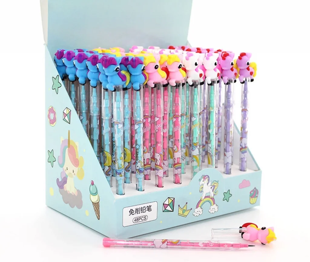 UNICORN YUMURTLAYAN KALEM MODEL 2 Ürün Özellikleri17 cm boyutundaki unicorn figürlü yumurtlayan kalem, şık ve eğlenceli tasarımıyla hem yazma hem de dekoratif bir obje olarak kullanılabilir. Unicorn figürü ile süslenmiş olan kalem, renkli ve canlı tasarımıyla çocuklar ve yetişkinler için eğlenceli bir yazma aracıdır. Kurşun kalem, uzun süreli kullanım sağlar ve okul, ofis veya günlük kullanım için mükemmel bir seçenektir.Paket İçeriği1 adet unicorn yumurtlayan kalem (tekli fiyat)