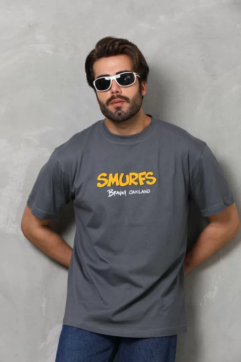Unisex Basic Bisiklet Yaka Oversize T-Shirt - Füme