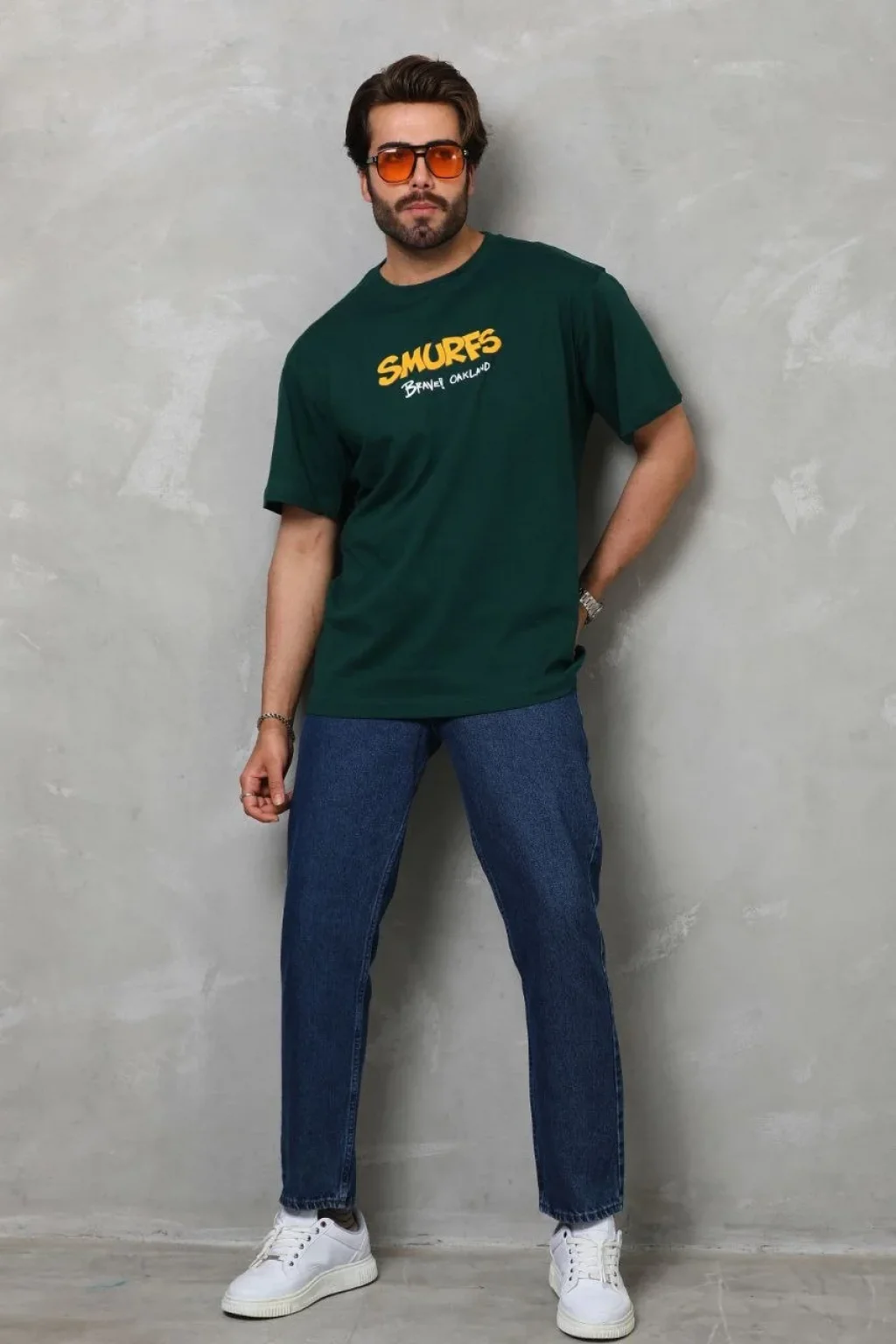 Unisex Basic Bisiklet Yaka Oversize T-Shirt - Yeşil