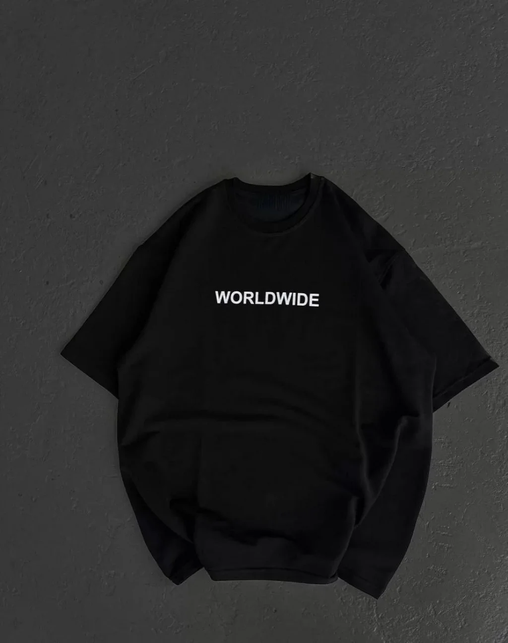 Unisex Bisiklet Yaka Baskılı Oversize T-Shirt - Siyah
