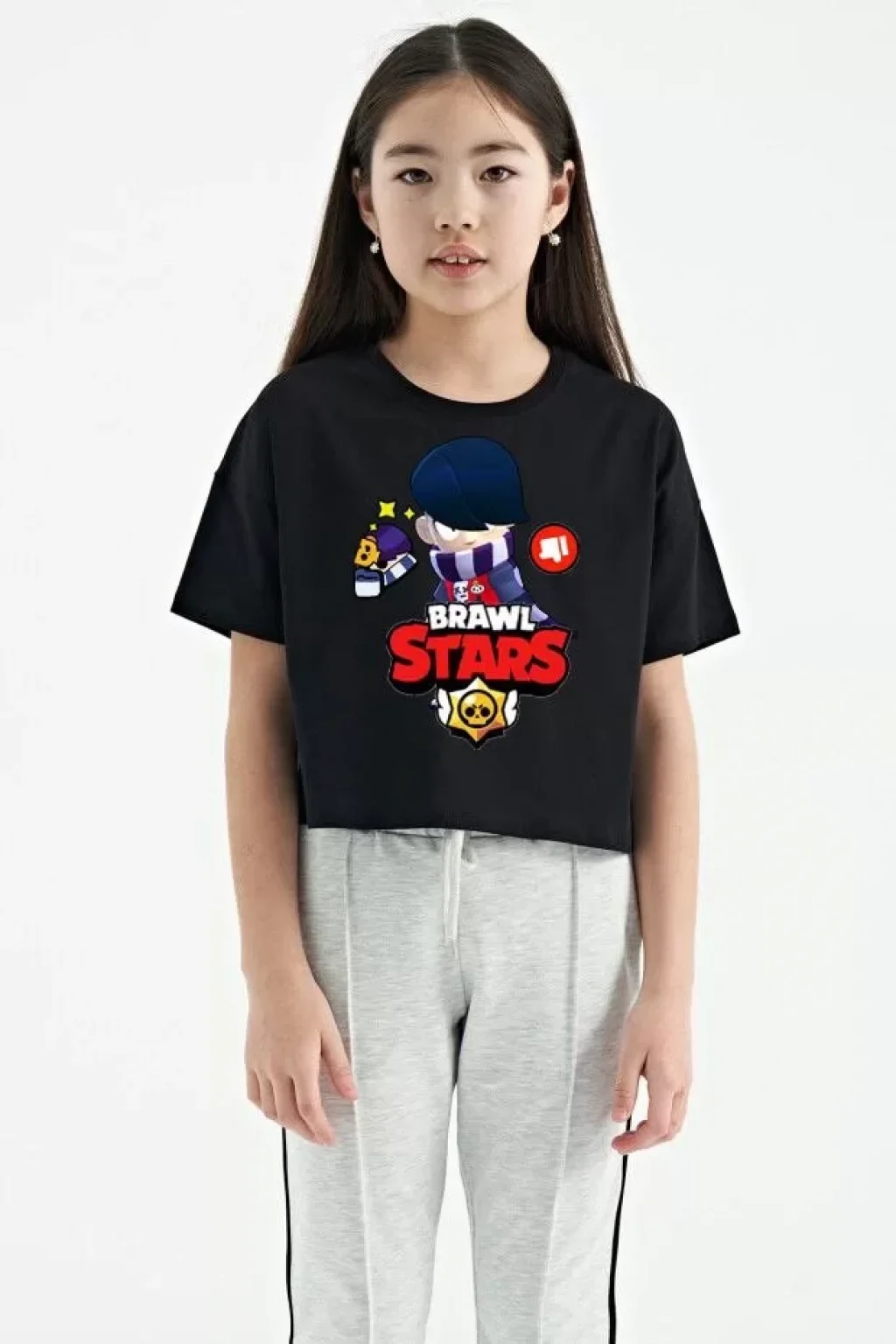 Unisex Bisiklet Yaka Kısa Kol Baskılı Çocuk T-Shirt - Siyah