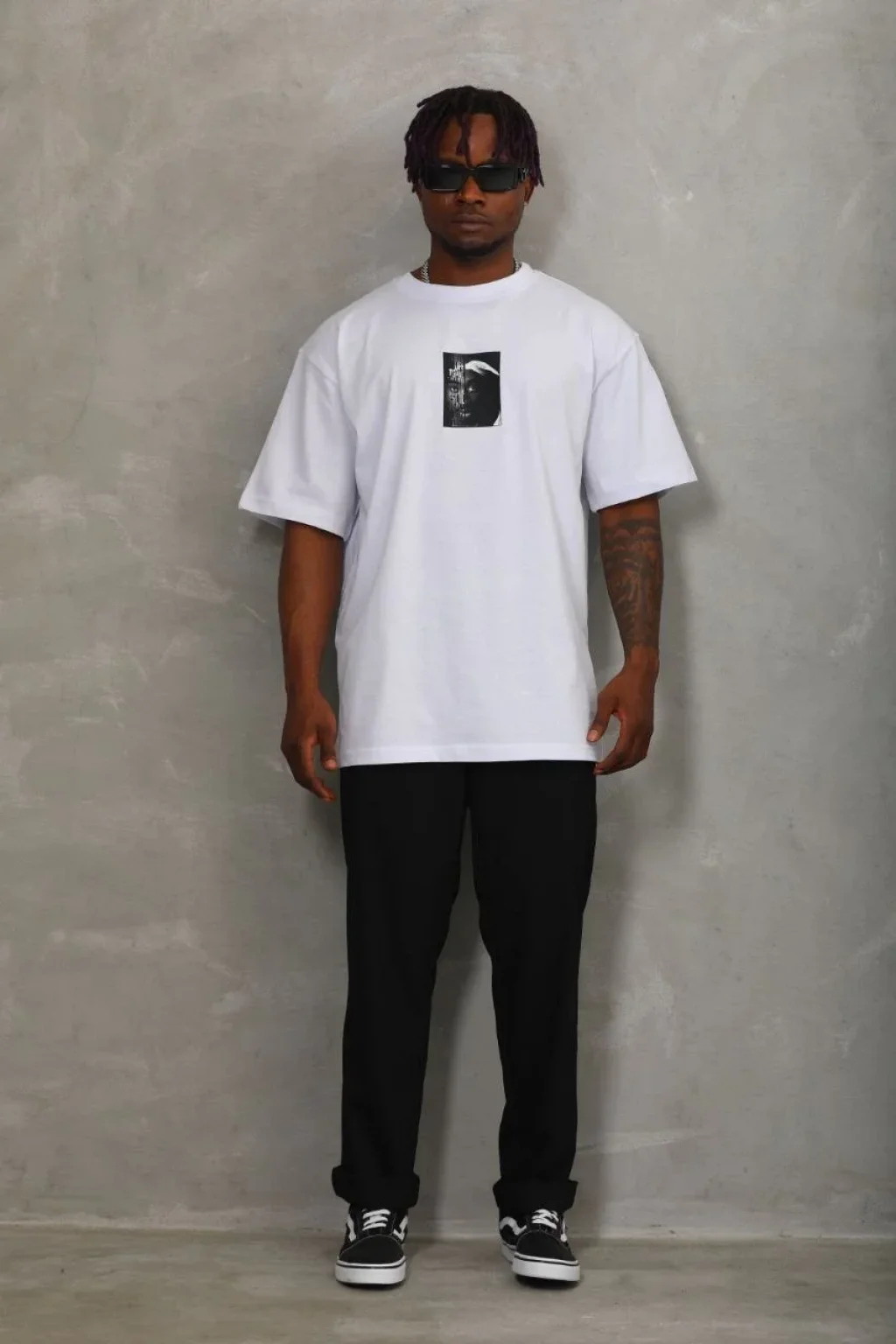 Unisex Oversize Baskılı Bisiklet Yaka T-Shirt - Beyaz