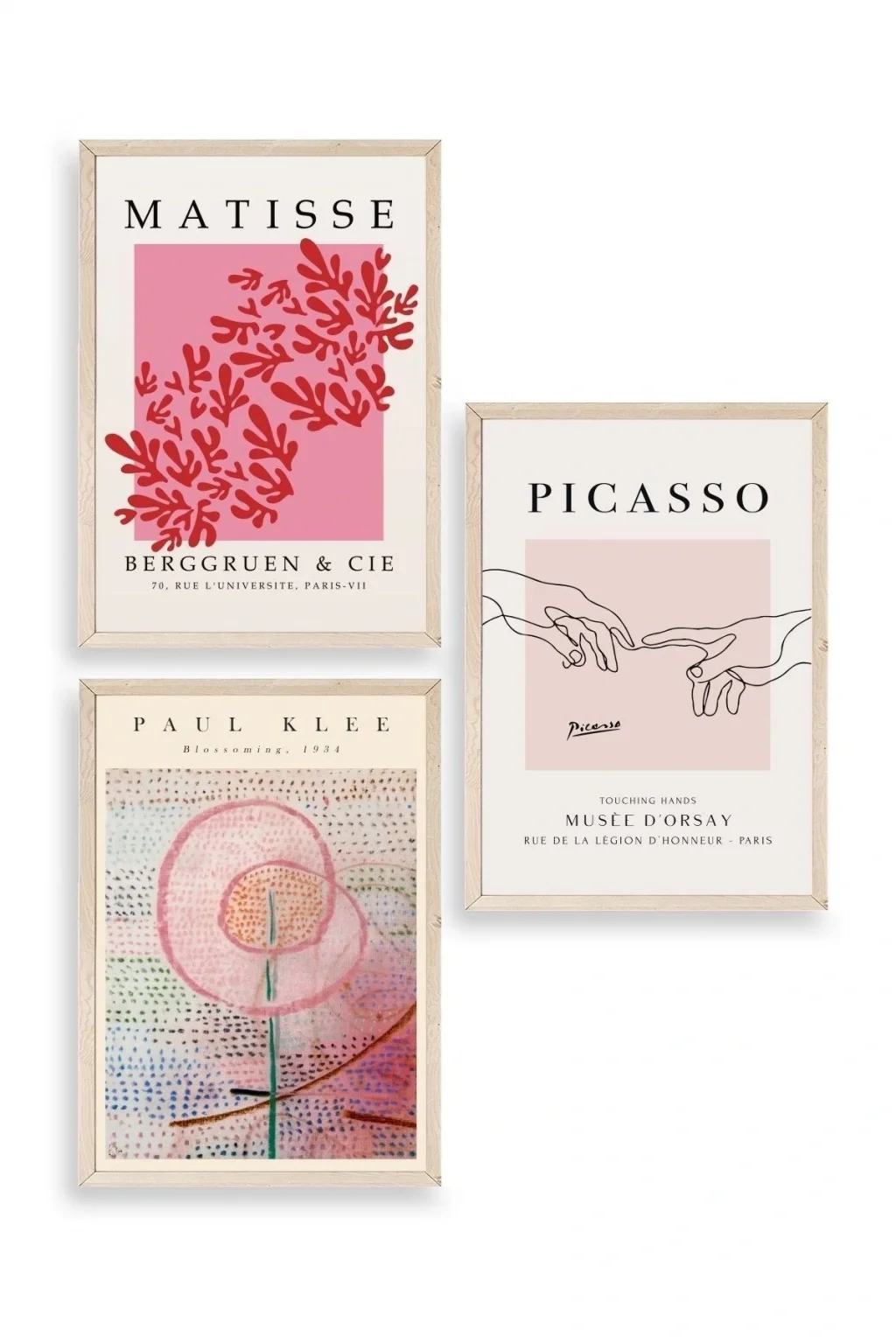 Ünlü Tablolar Üçlü Ahşap Çerçeveli Tablo
