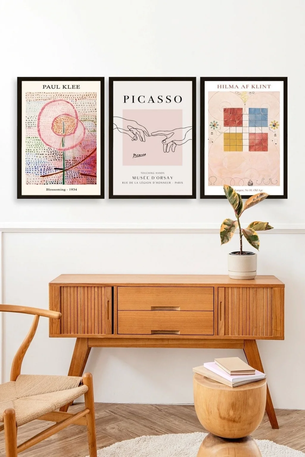Ünlü Tablolar Üçlü Ahşap Çerçeveli Tablo