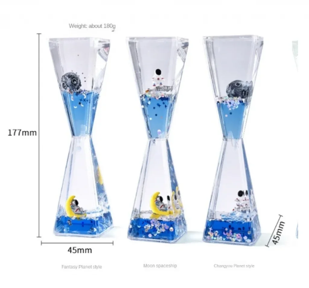 UZAY TEMALI DÖKÜLEN YAĞ KUM SAATİ1. Akrilik malzeme.2. Masaya, rafa veya masanın herhangi bir yerine yerleştirilebilen eğlenceli ve sevimli süslemeler için uygundur.3. Güzel görünüm, astronotlar nasıl yerleştirildikleri önemli değildir her halükarda yüzer duruma geçerler.4. Doğum günü, yıldönümü, düğün, babalar günü, anneler günü, ev dekorasyon için uygundur.Sıvı: mineral yağ + arıtılmış suBoyut: 17.4 x 5.5 x 4.8 cmAmbalaj listesi:1 adet sıvı sürüklenen uzay temalı aksesuar