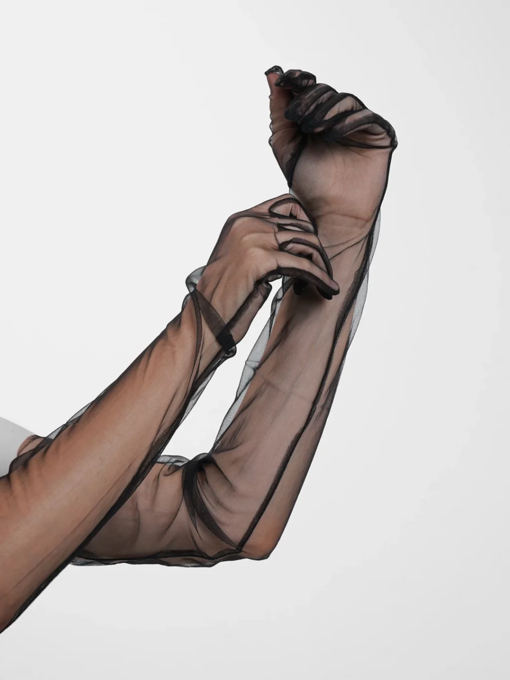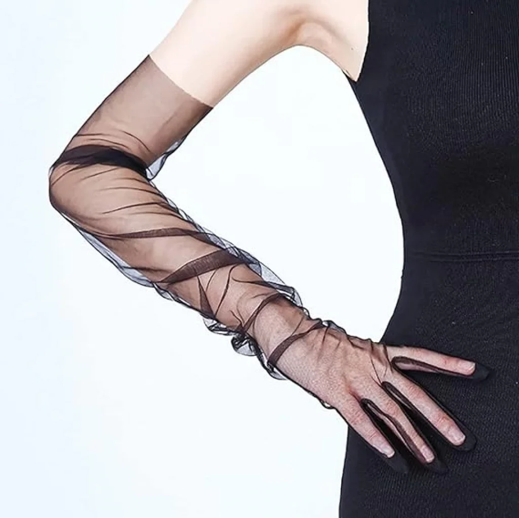 Uzun Boy Likralı Siyah Yetişkin Mega Tül Eldiven
