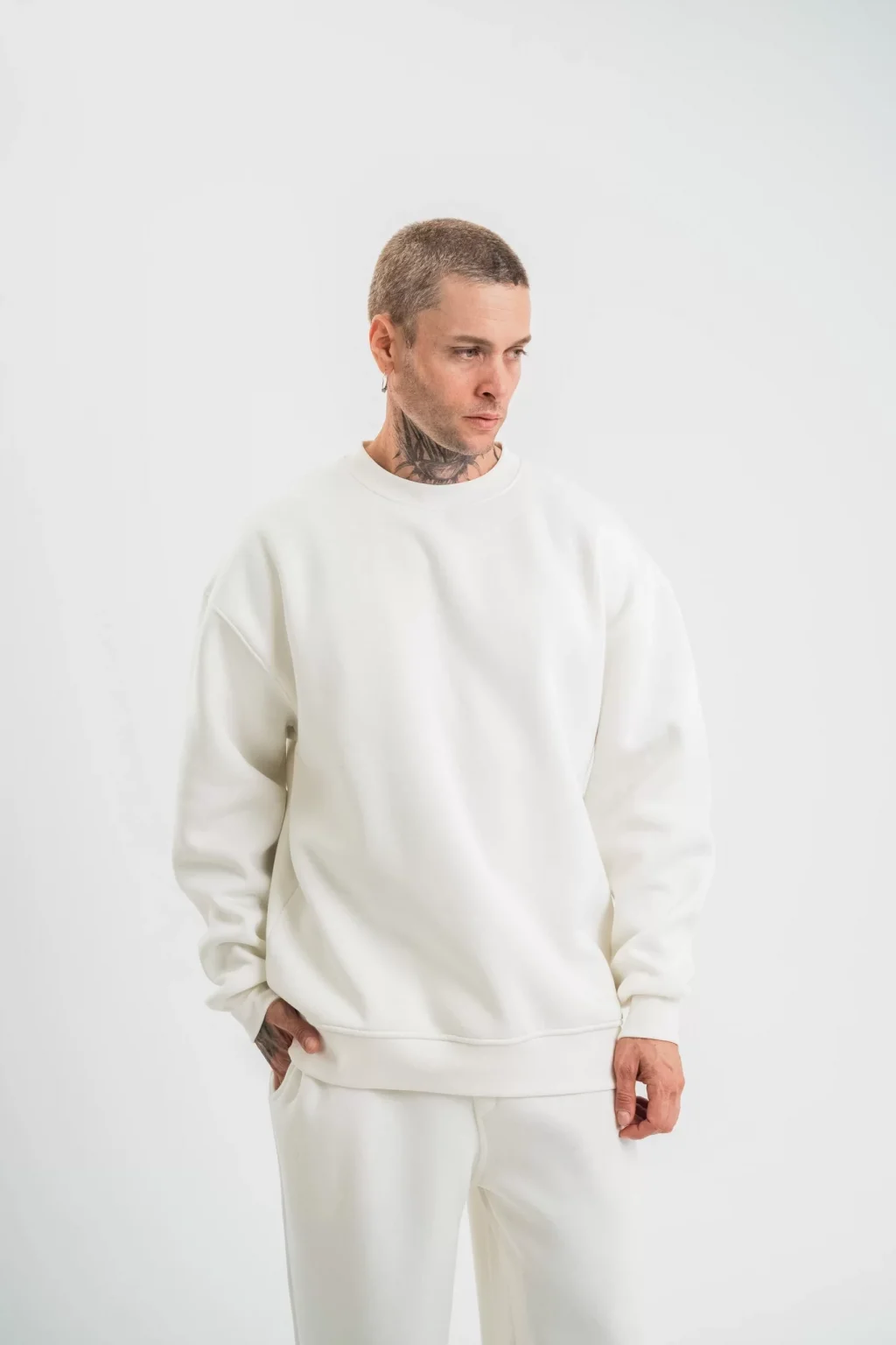 Uzun Kol Bisiklet Yaka Basic SweatShirt - Beyaz